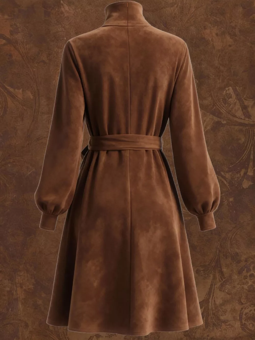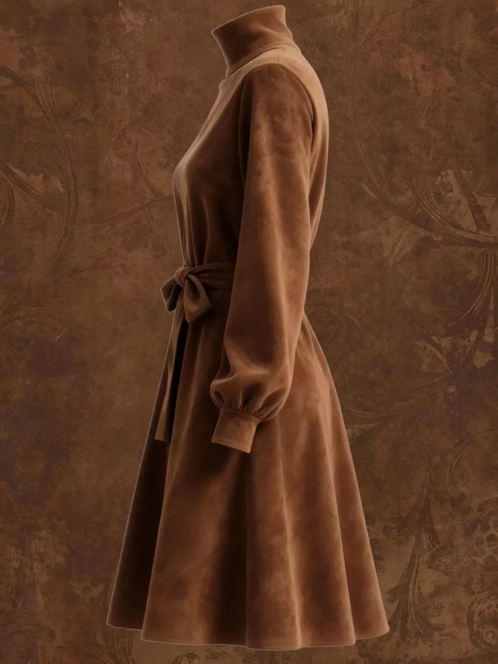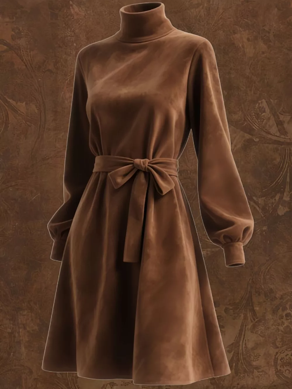 Bow Velvet Turtleneck Lantern Sleeve Dress