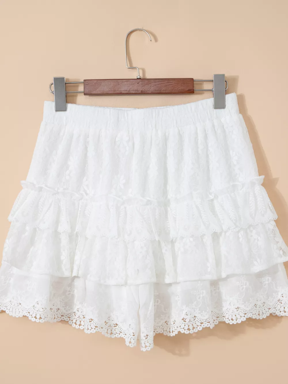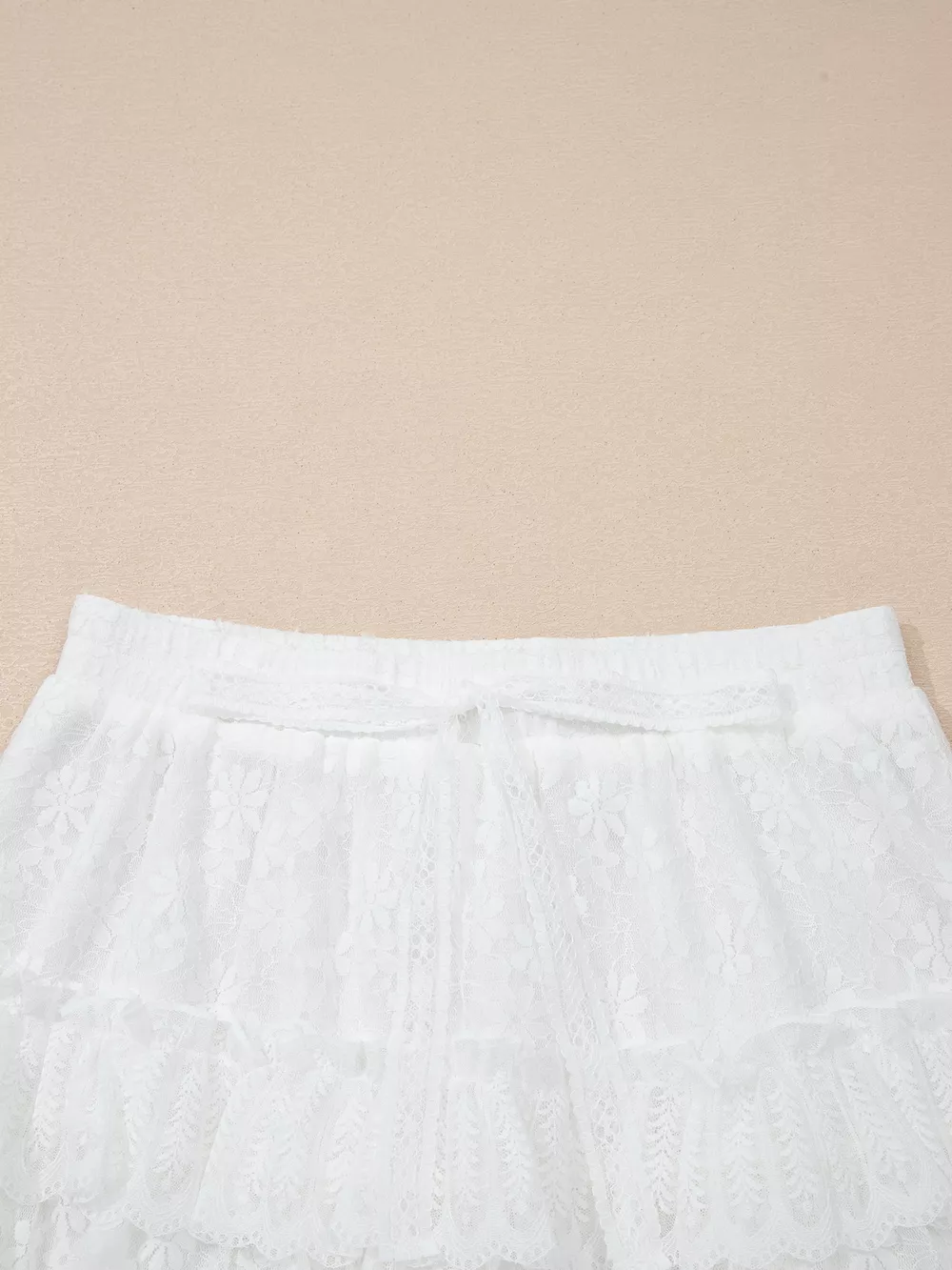 Lace Ruffle Tiered Drawstring Elastic Waist Shorts