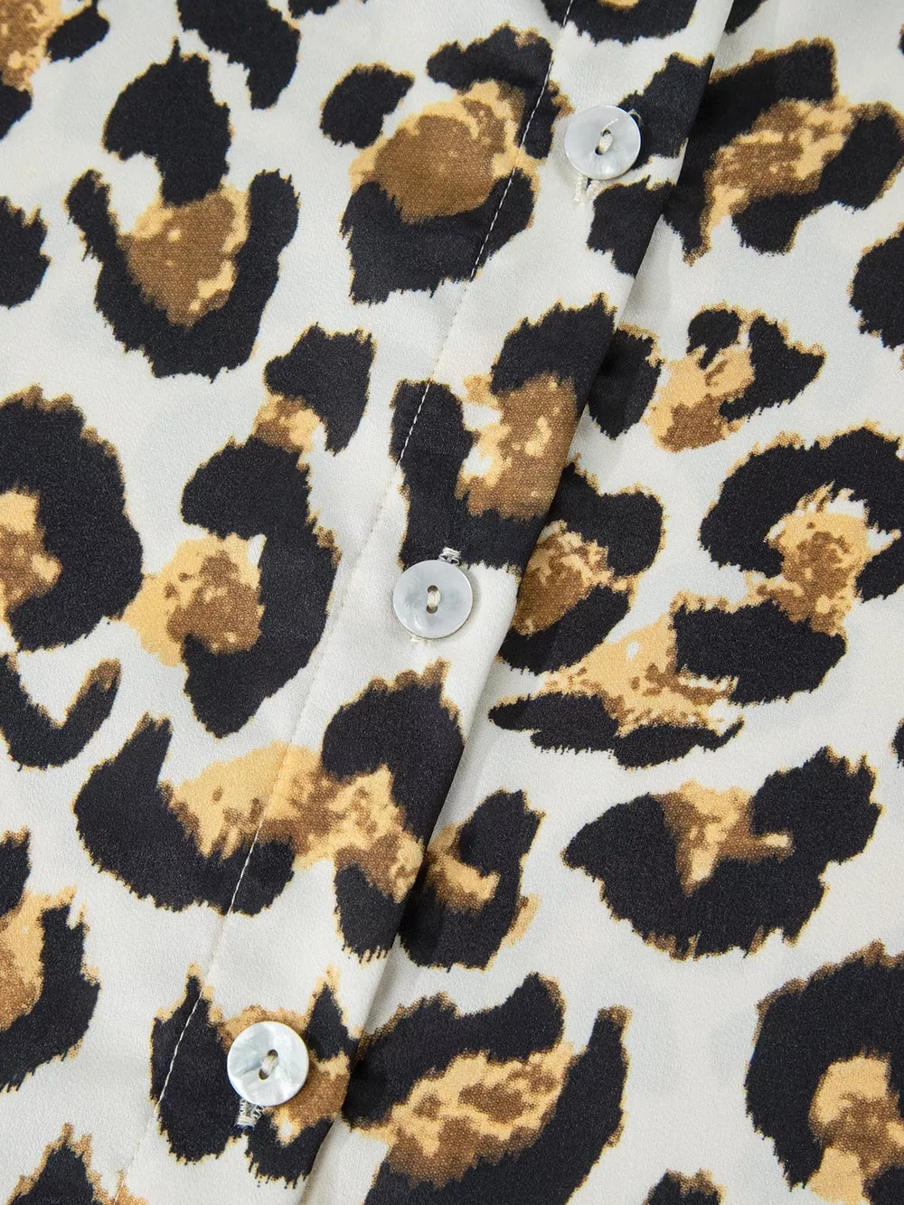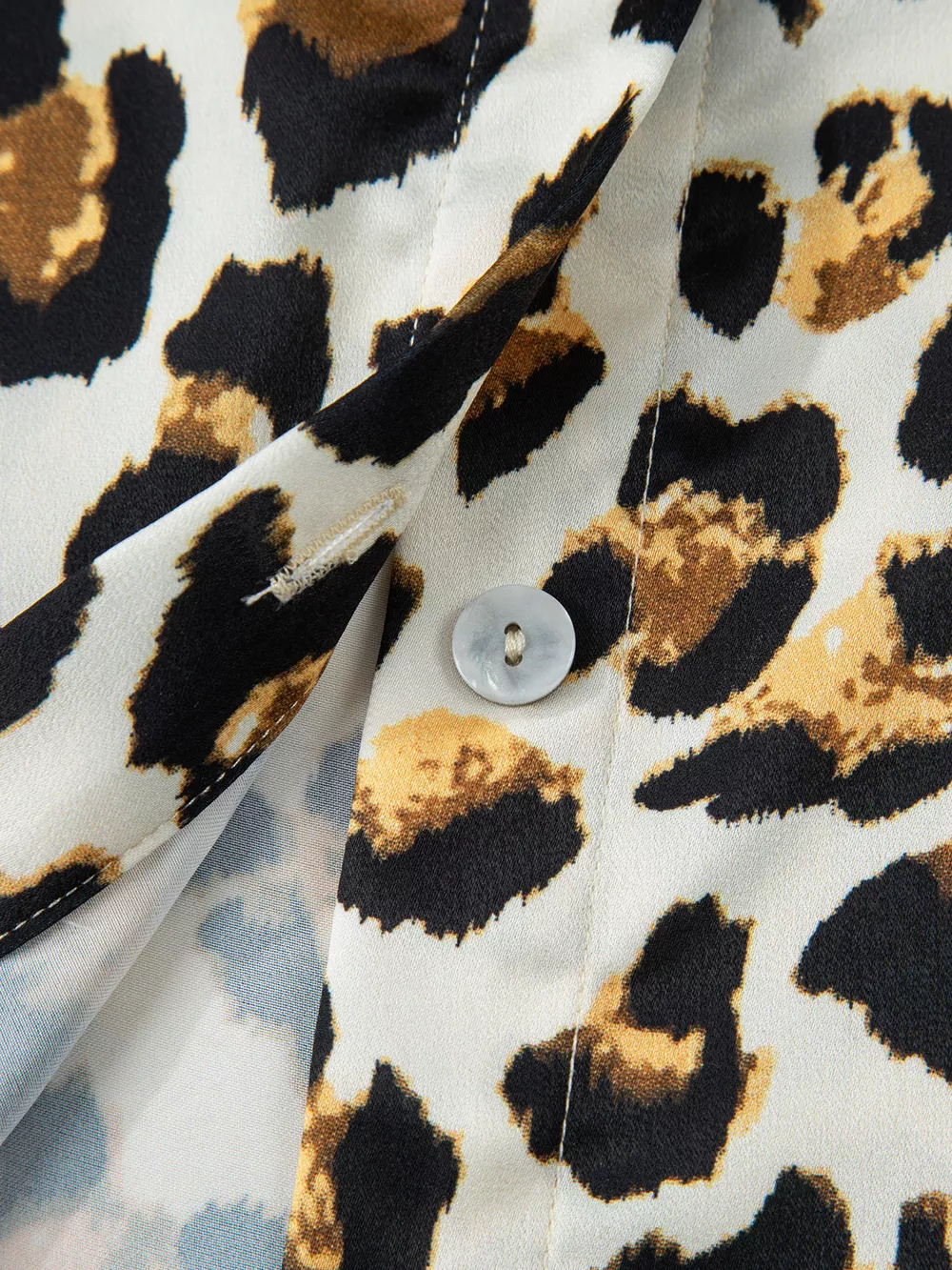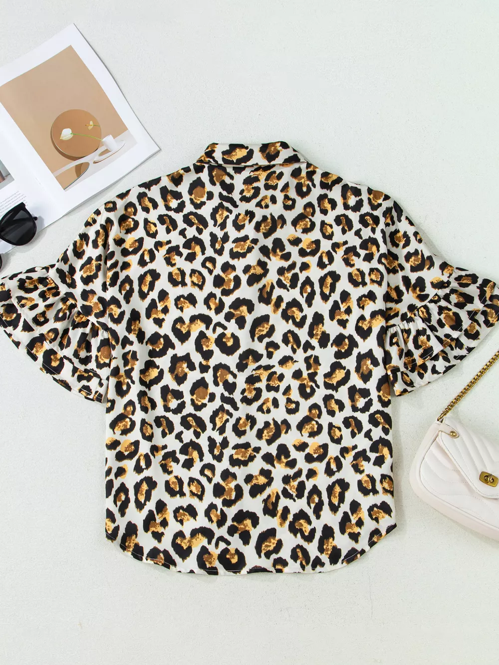 Leopard Print Ruffle Trim 3/4 Sleeve Loose Shirt