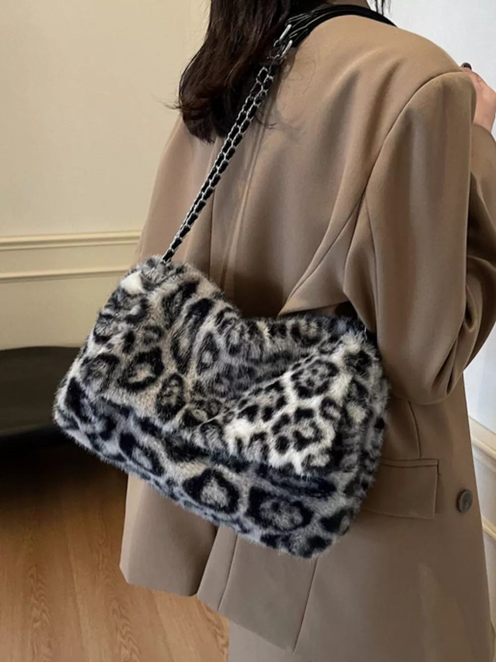 Leopard Plush Shoulder Bag
