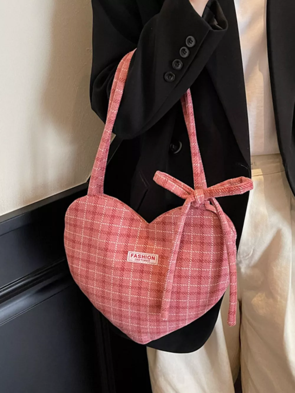 Heart-Shaped Plaid Shoulder Bag
