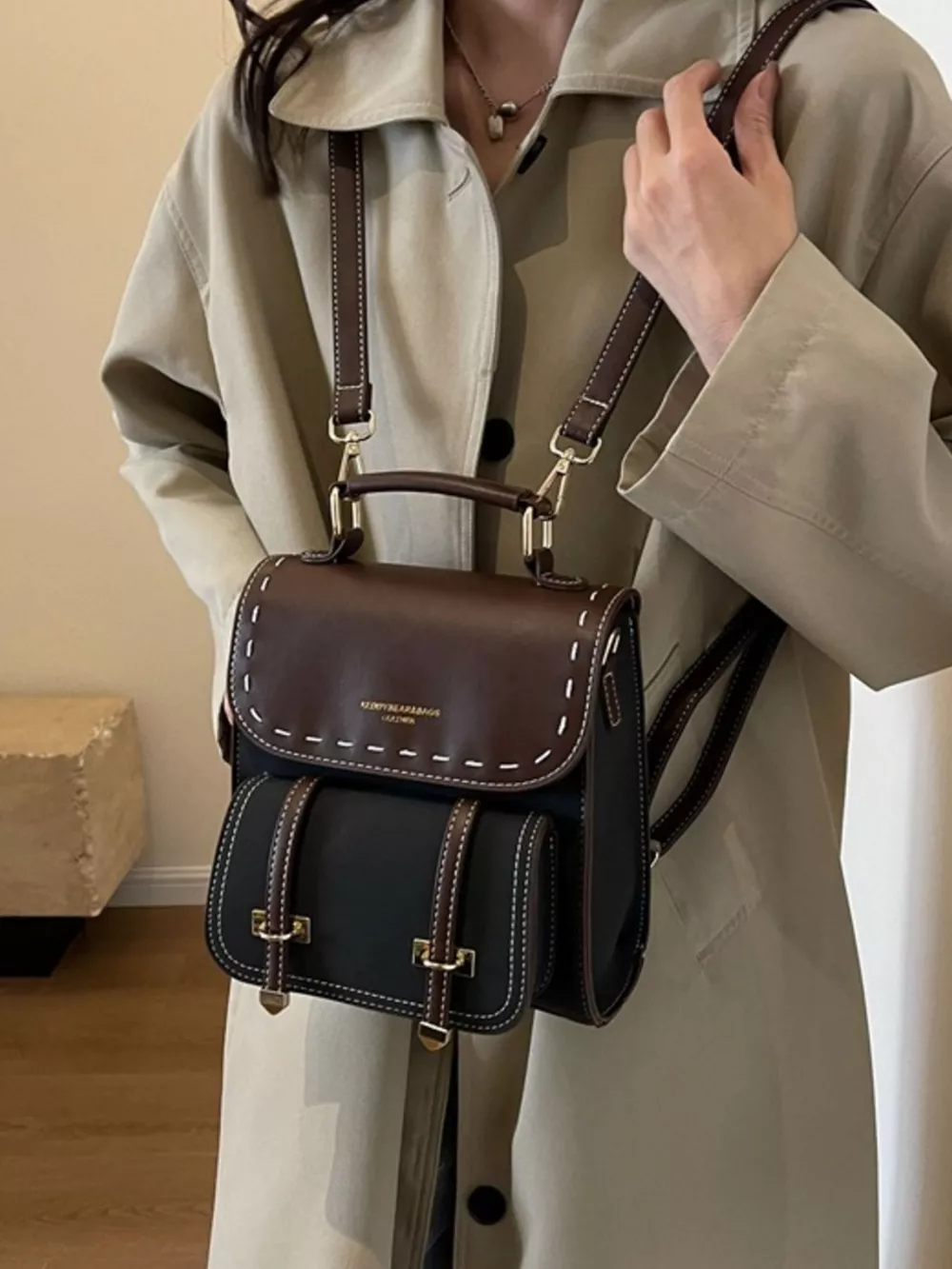 Vintage Style Leather Backpack Bag