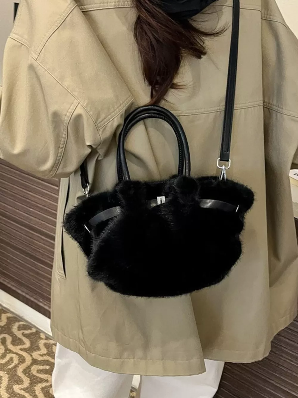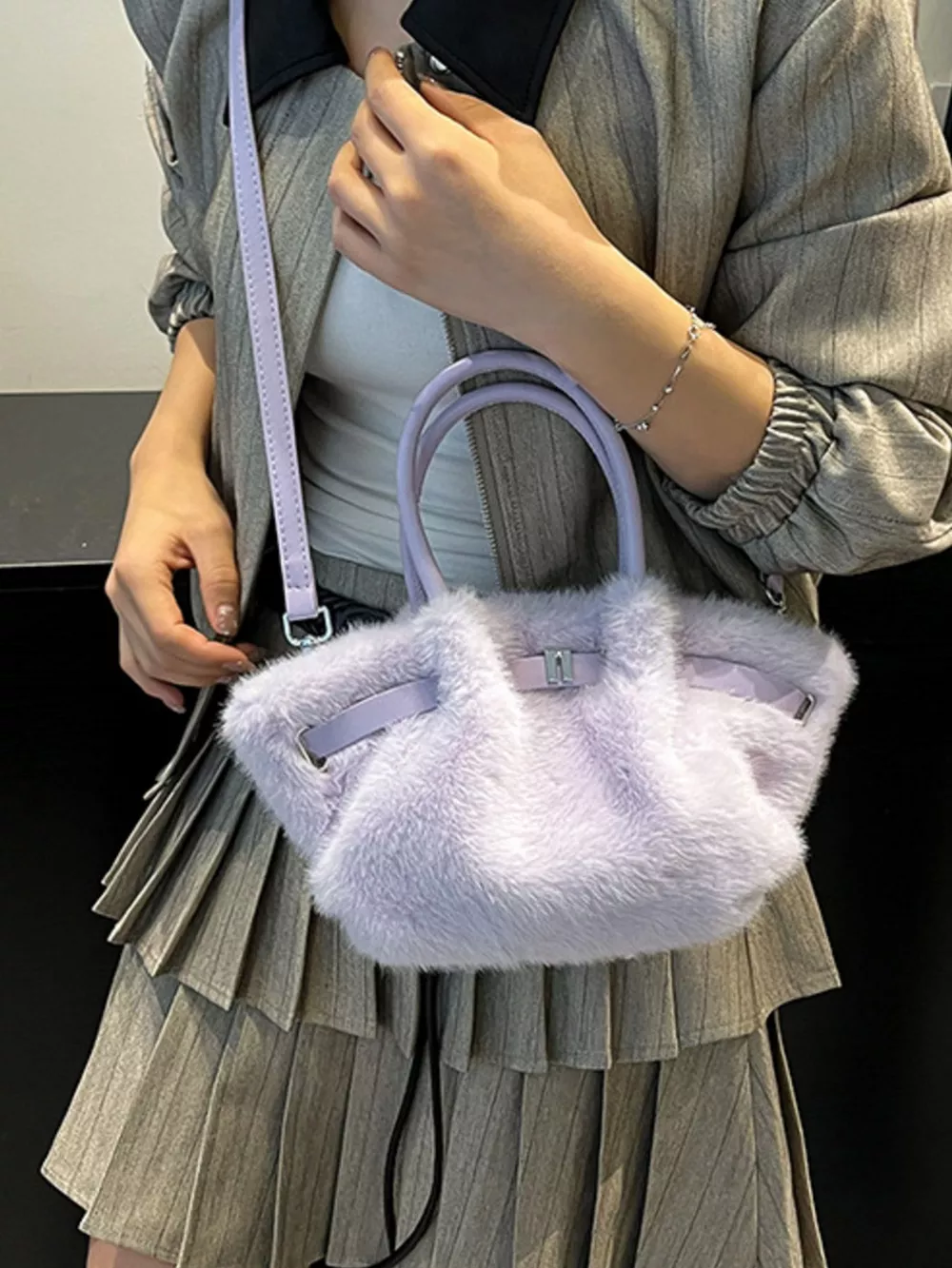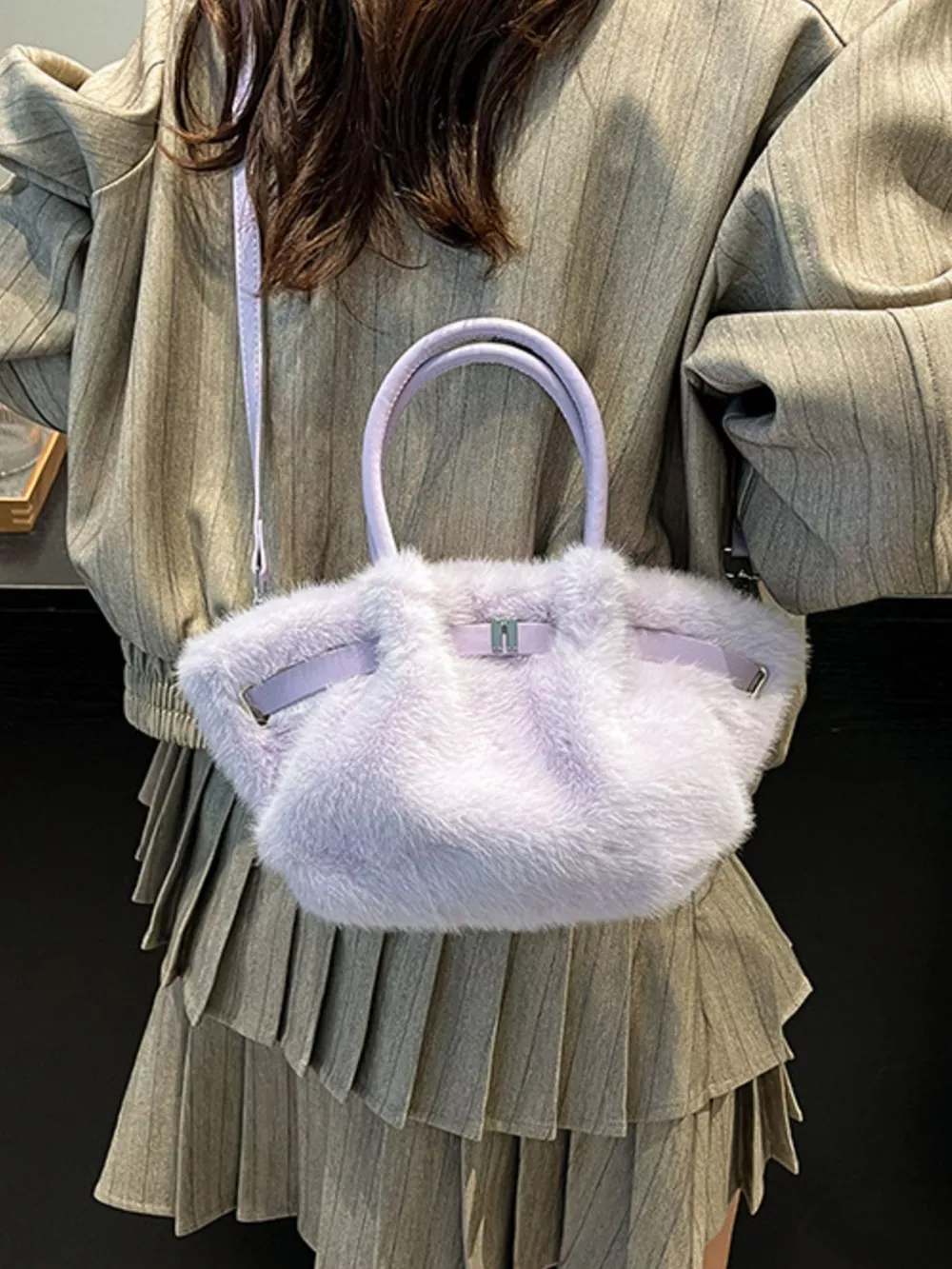Fluffy Crossbody Bag with Buckle Detail