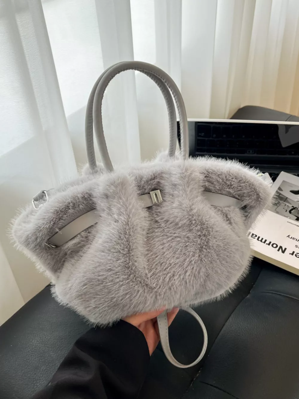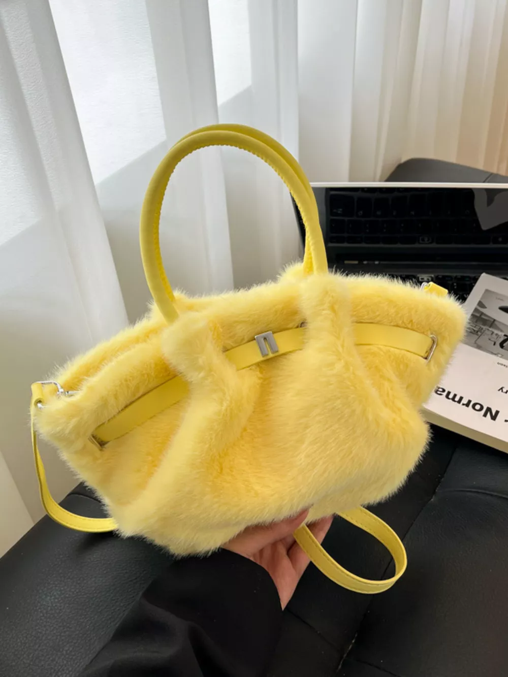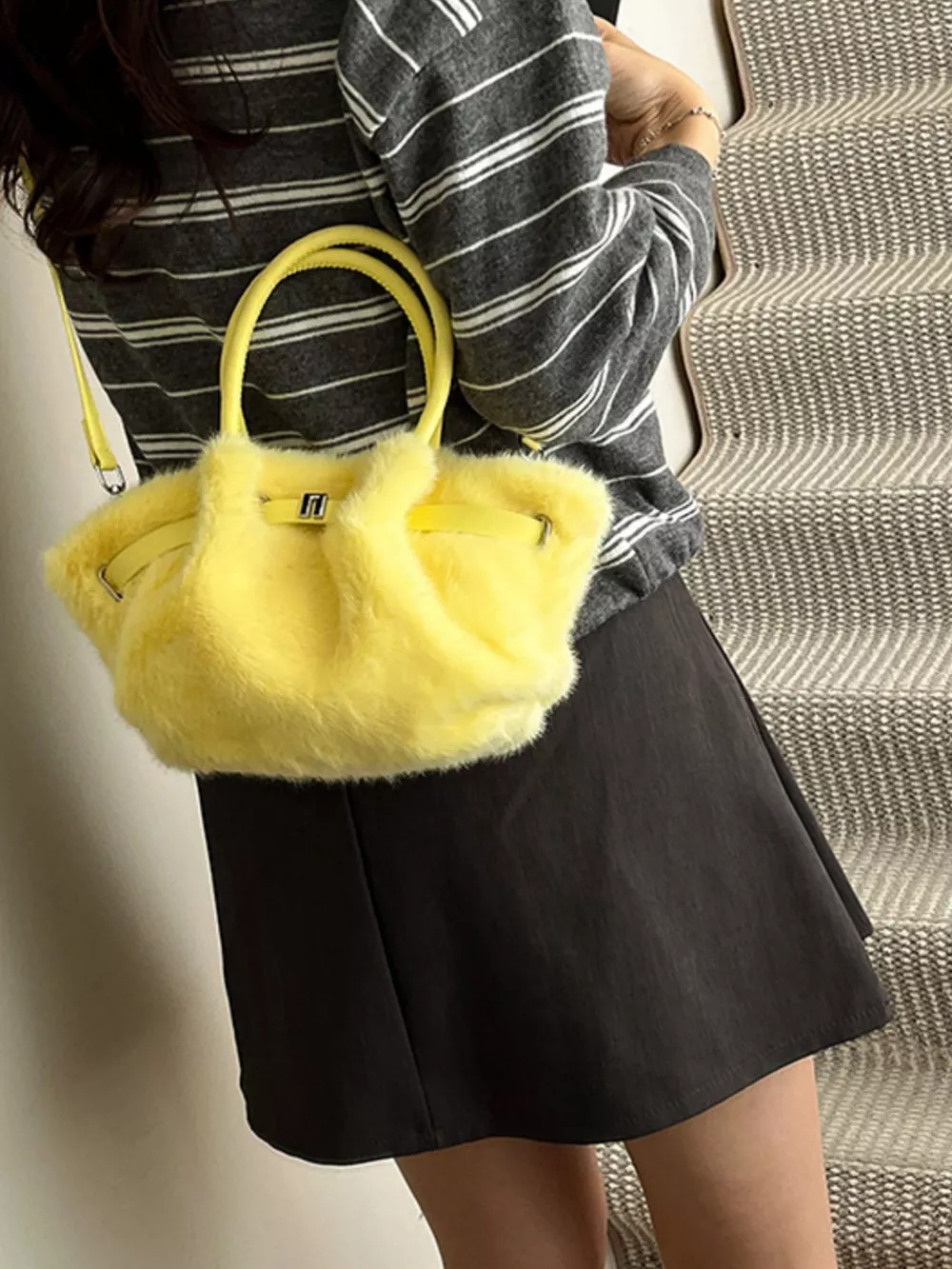 Fluffy Crossbody Bag with Buckle Detail