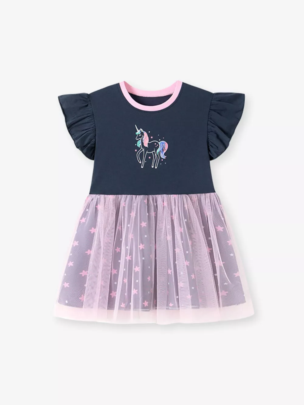 Children's Unicorn Graphic Ruffle Sleeve Tulle Dress