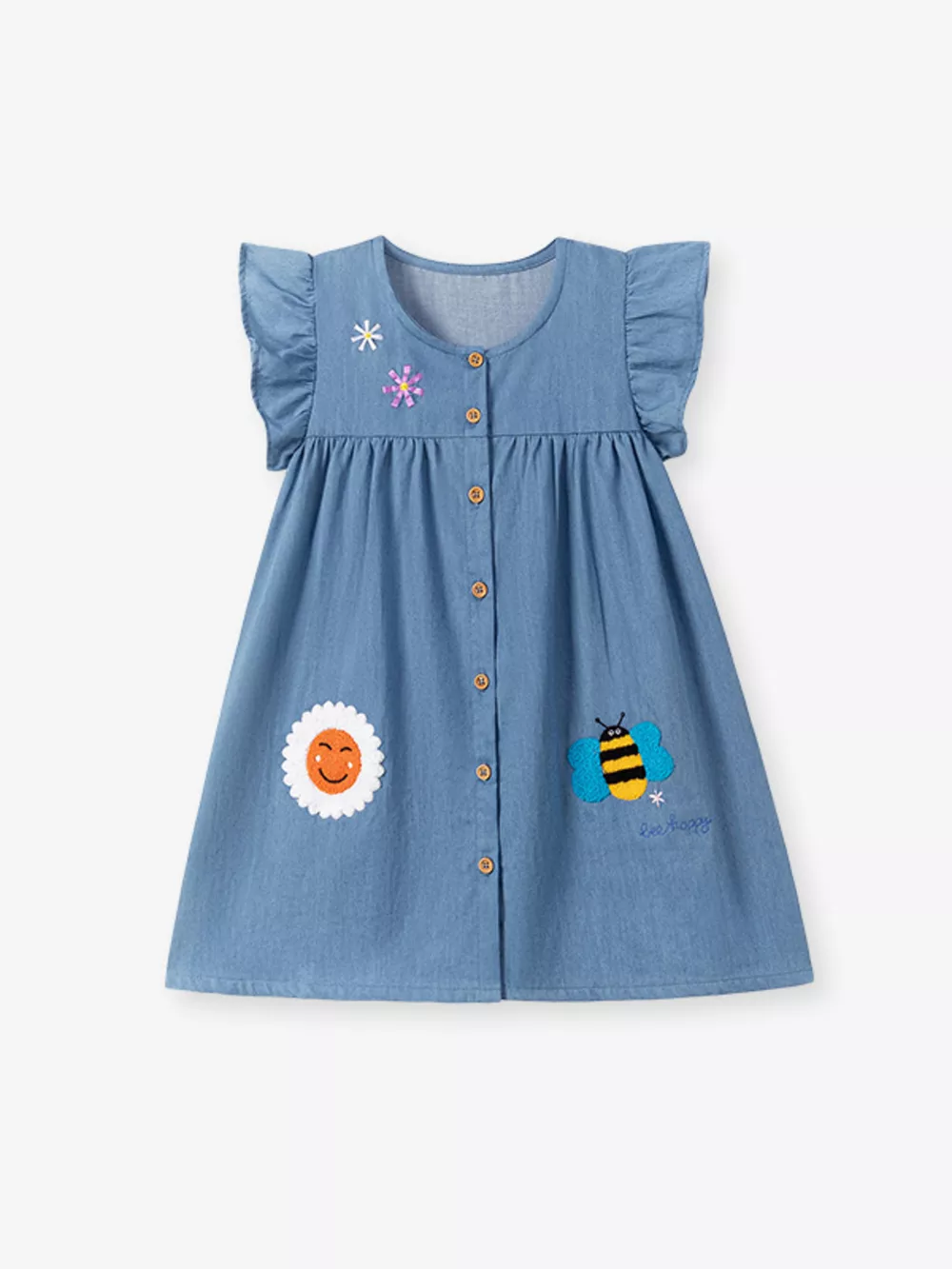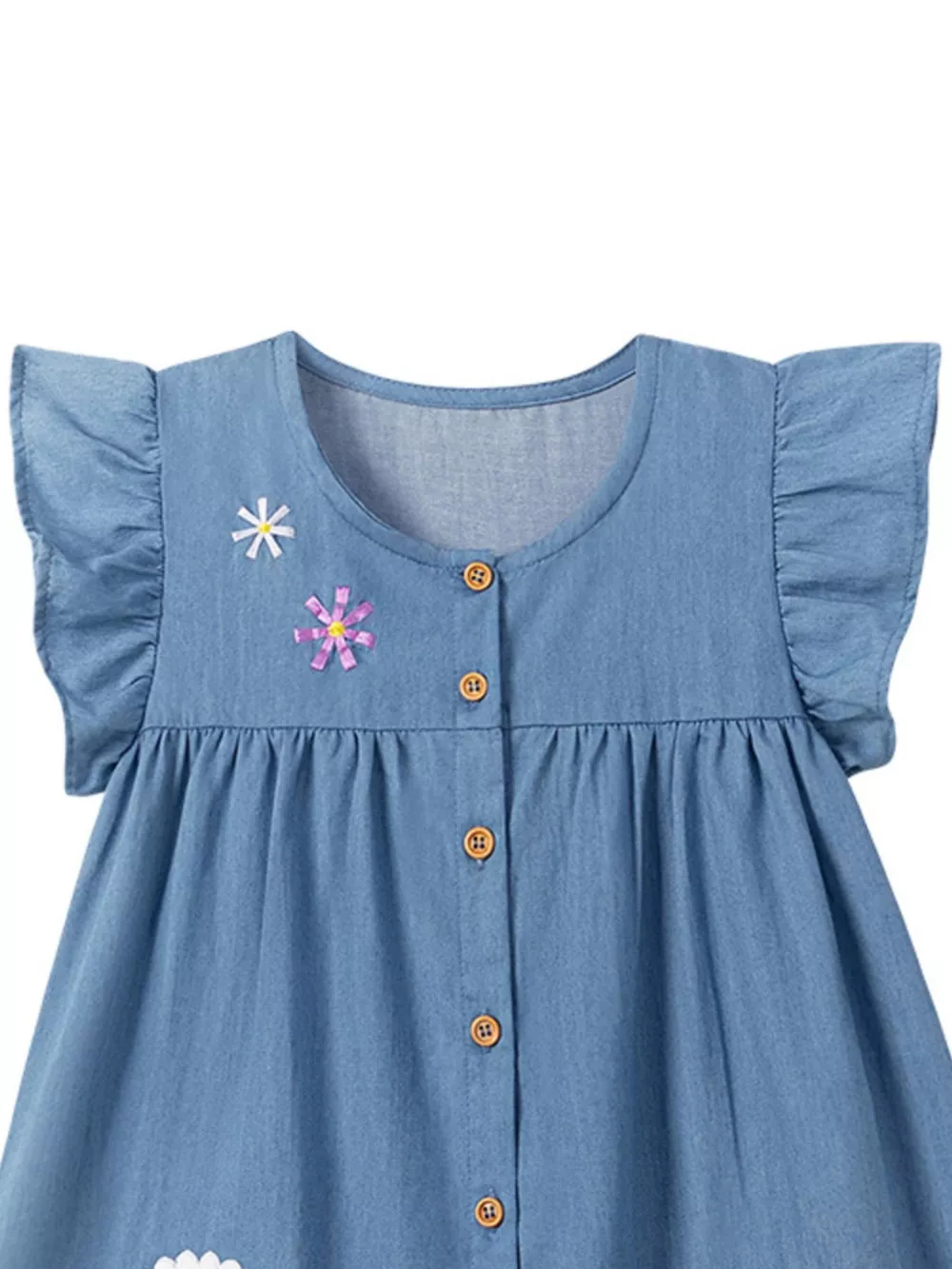 Children's Button Front Ruffle Sleeve· Denim Dress