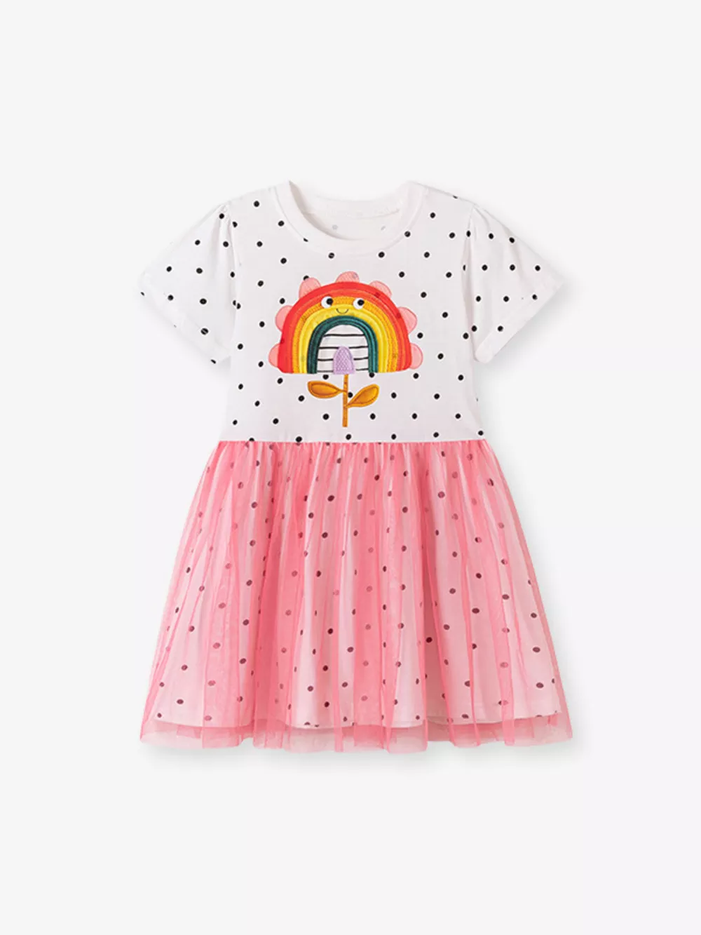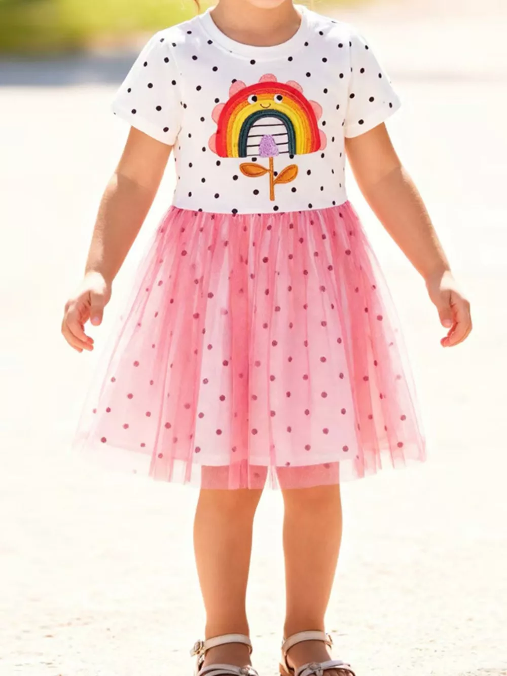 Children's Rainbow Flower Polka Dot Tulle Dress