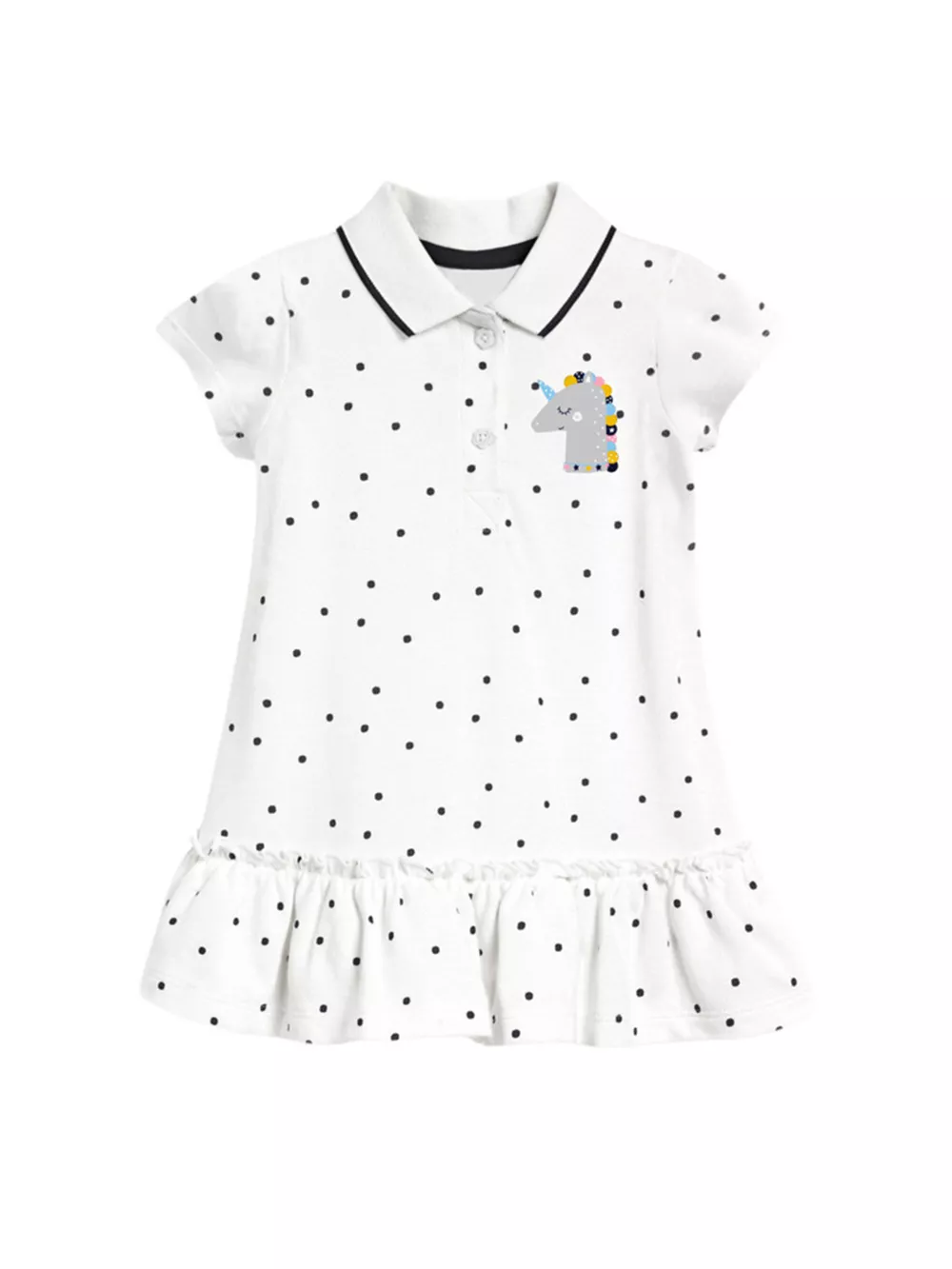 Children's Polka Dot Ruffle Hem Polo Dress