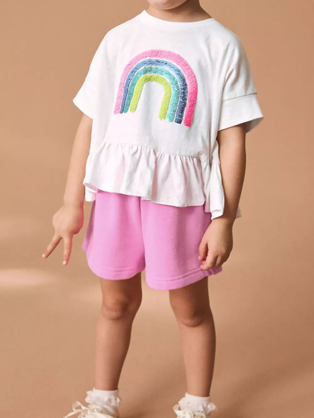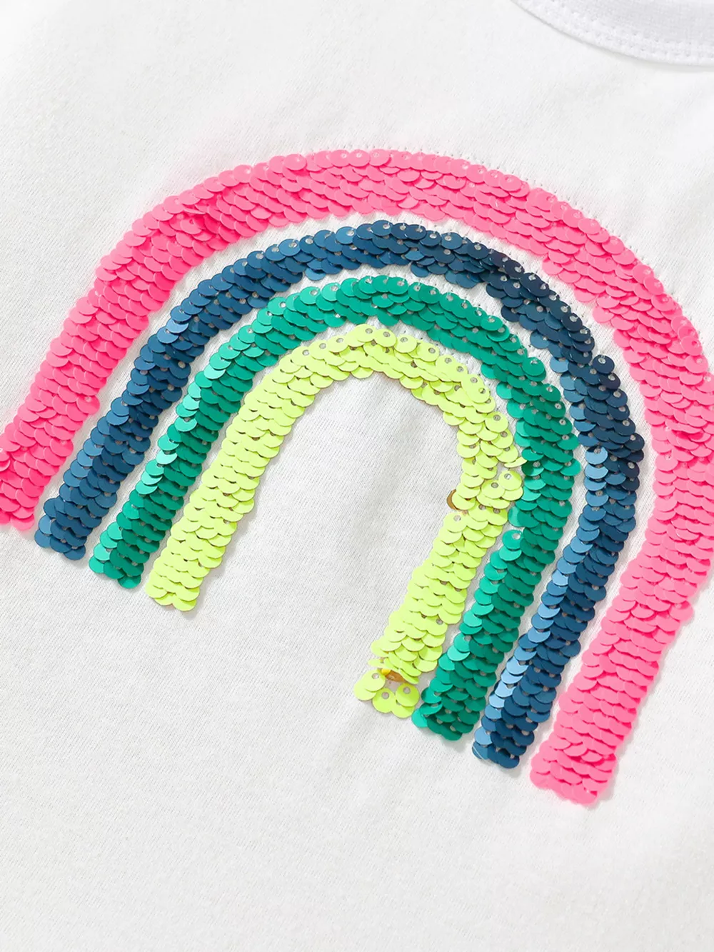 Children's Sequin Rainbow Ruffle Hem Top and Shorts Set