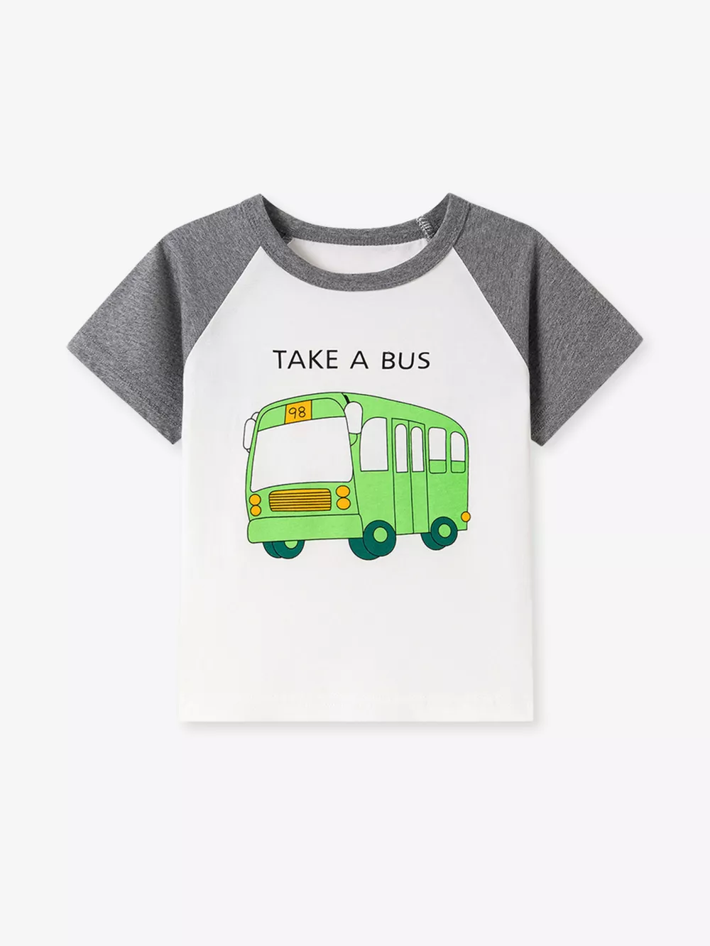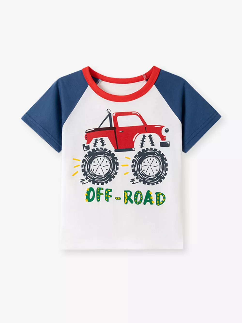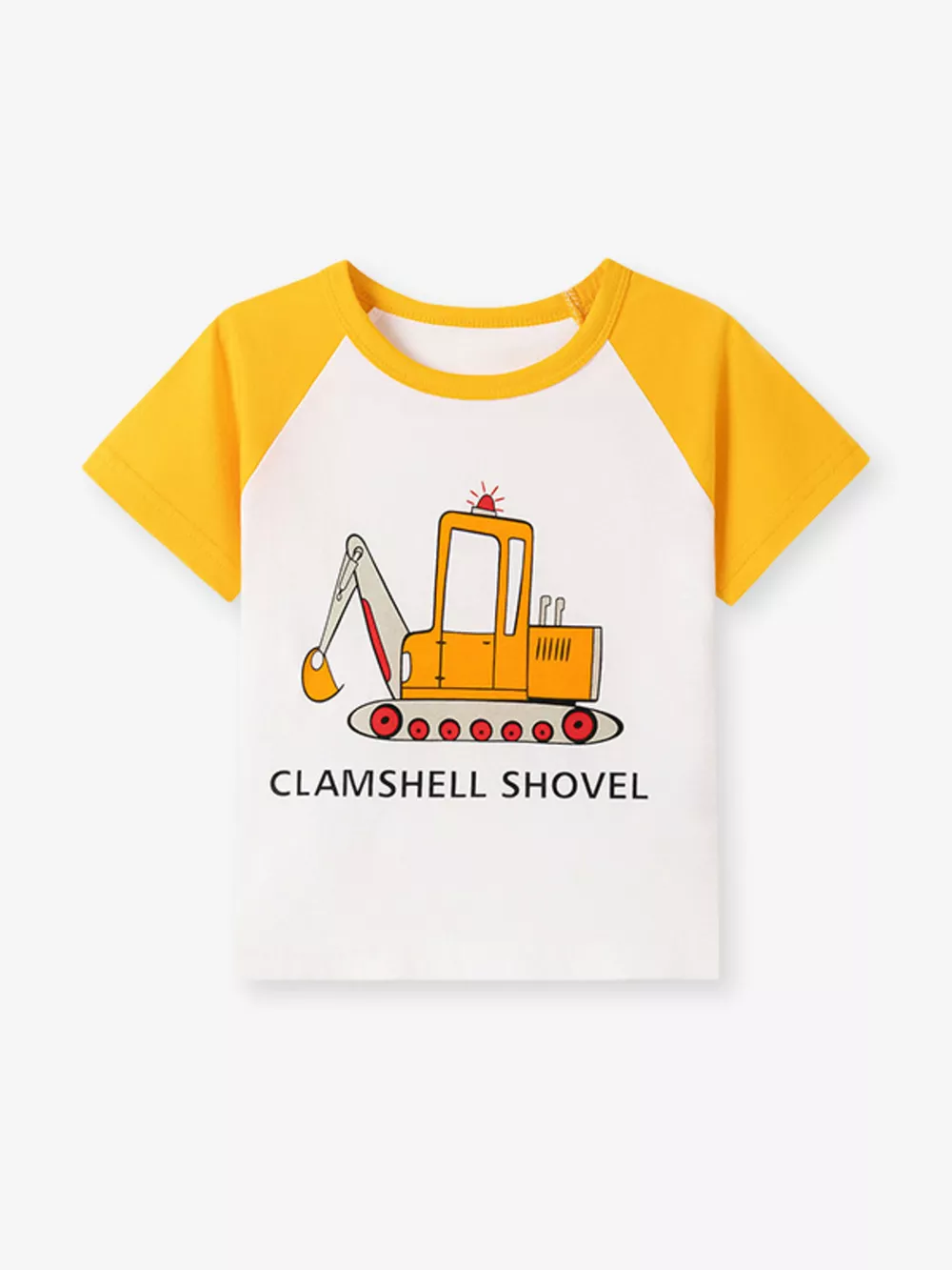 Children's Cartoon Vehicle Graphic Raglan Sleeve T-Shirts