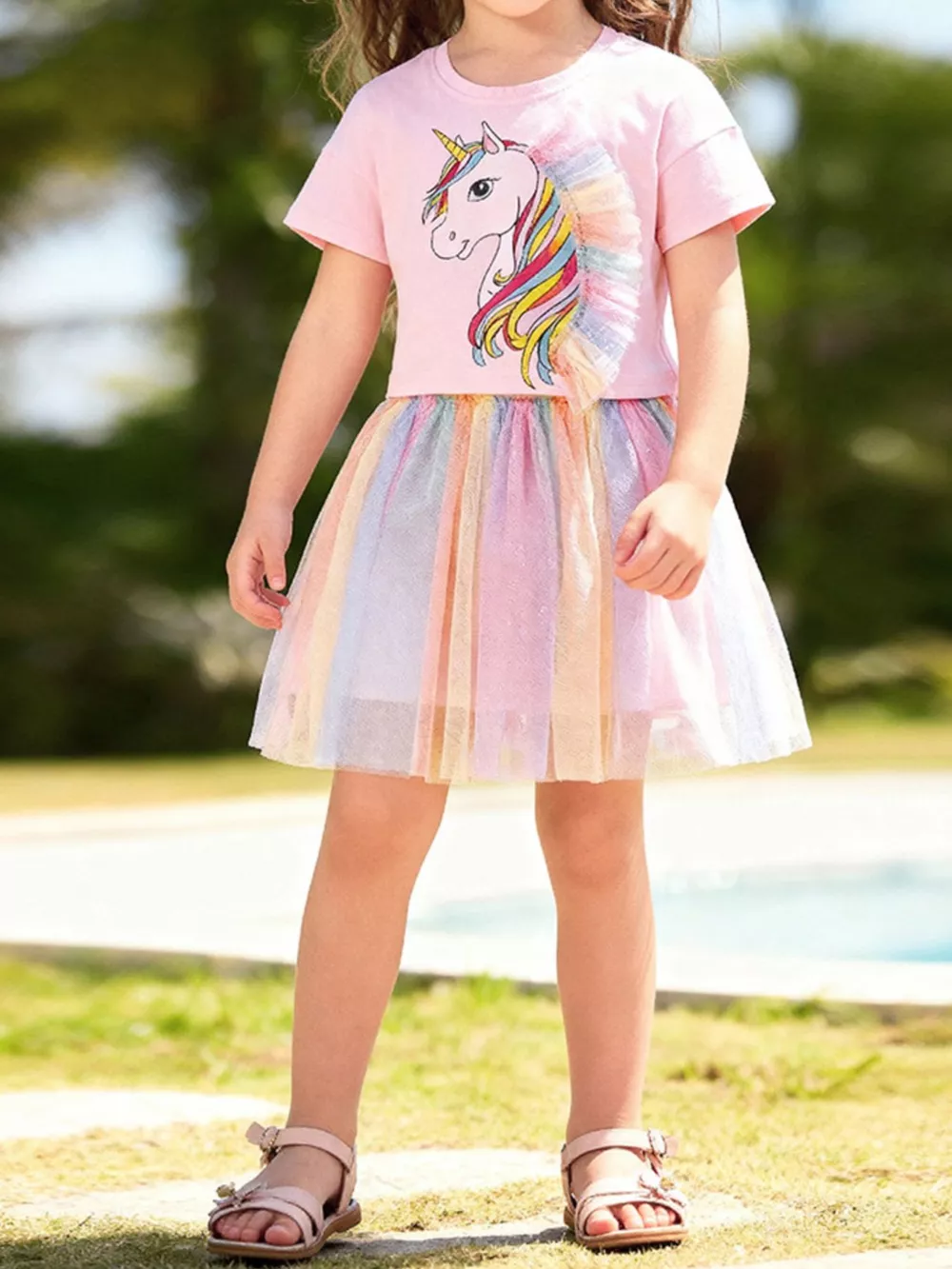 Children's Unicorn Rainbow Tulle Dress Set