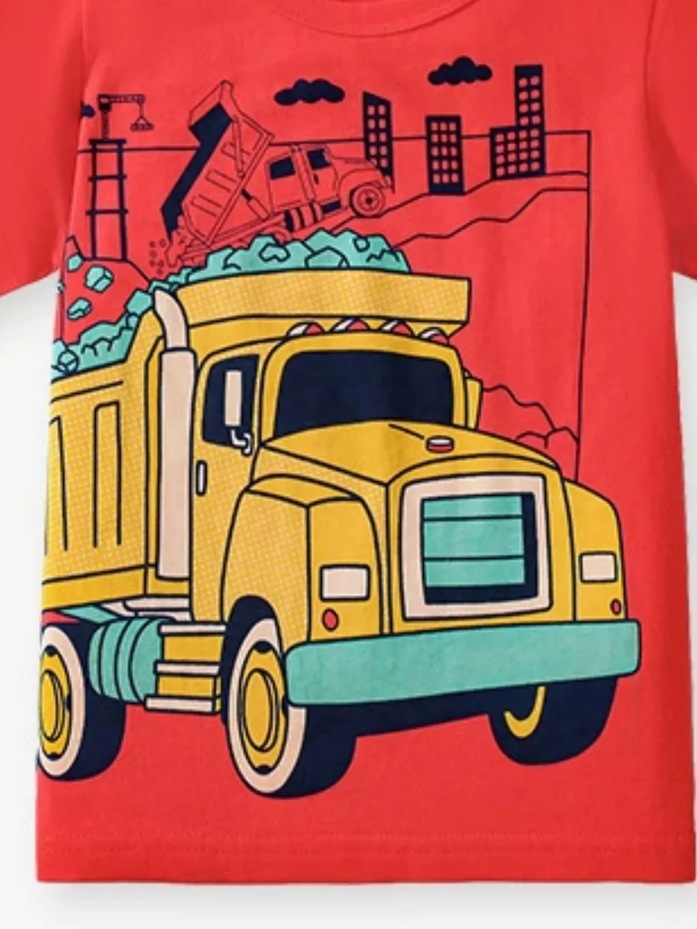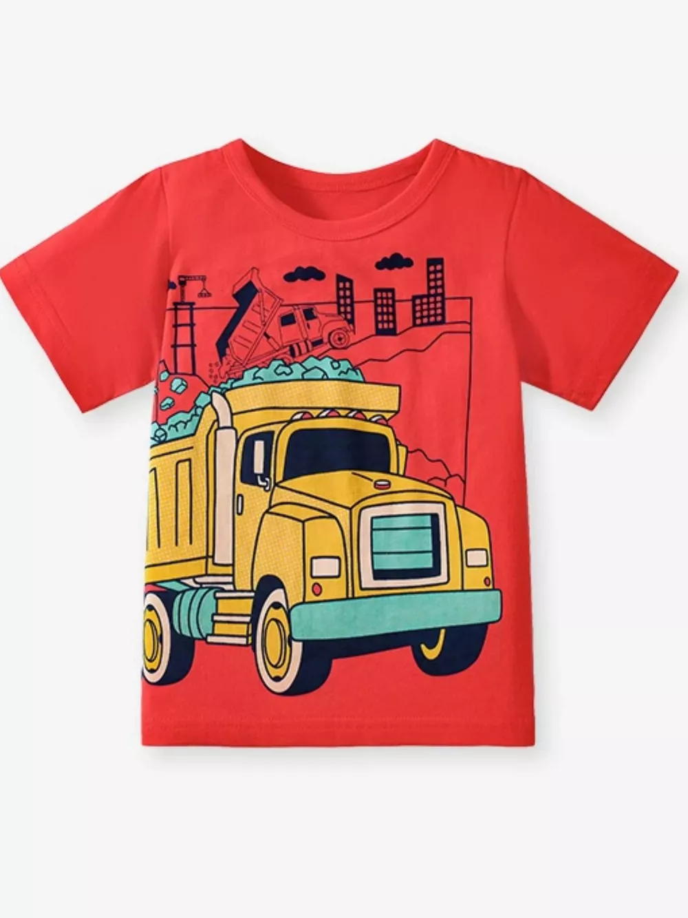 Children's Construction Vehicle Graphic Short Sleeve T-Shirt
