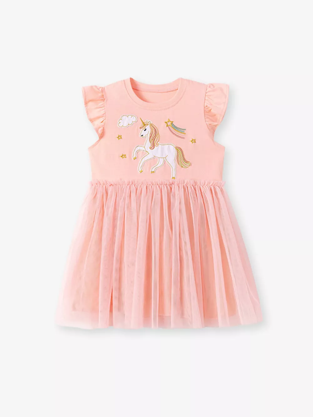 Children's Unicorn Ruffle Sleeve Tulle Dress