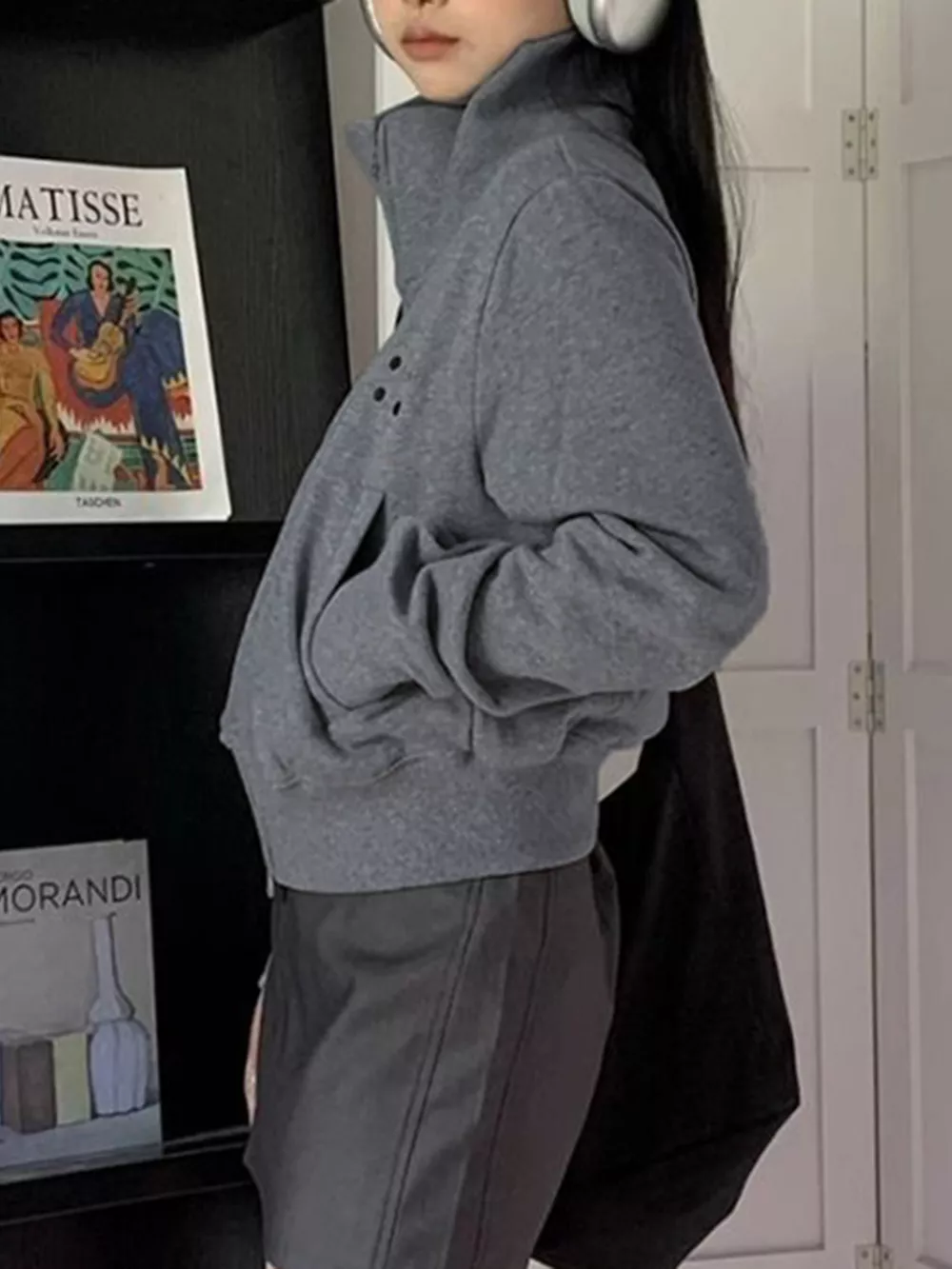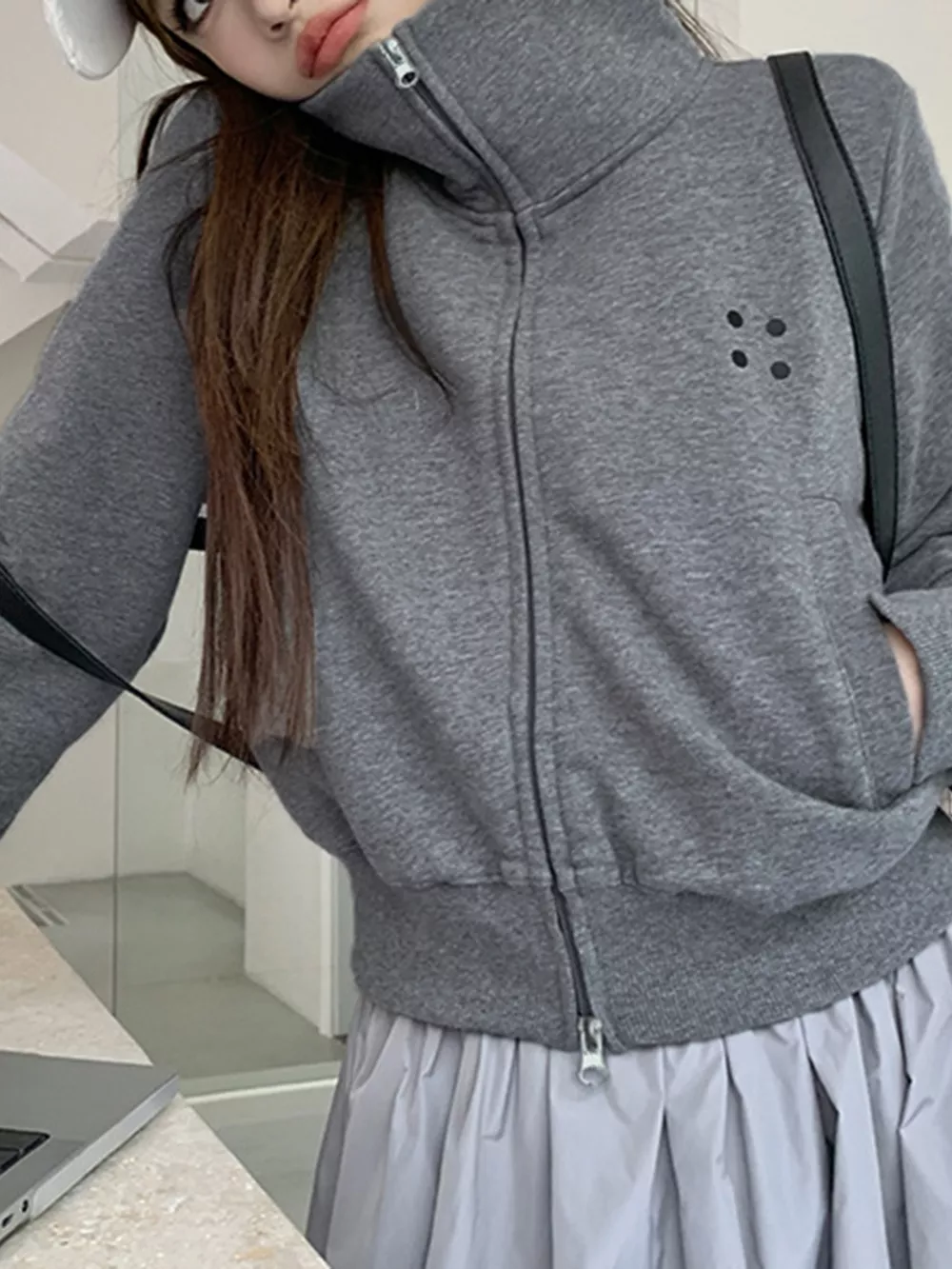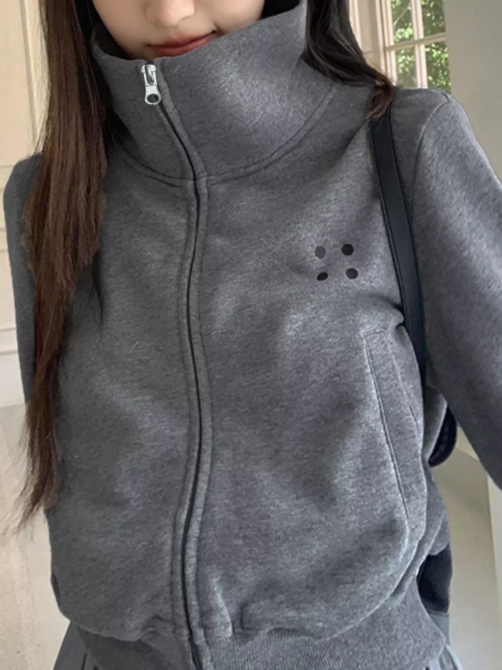 Casual Zip-Up Cropped Outerwear