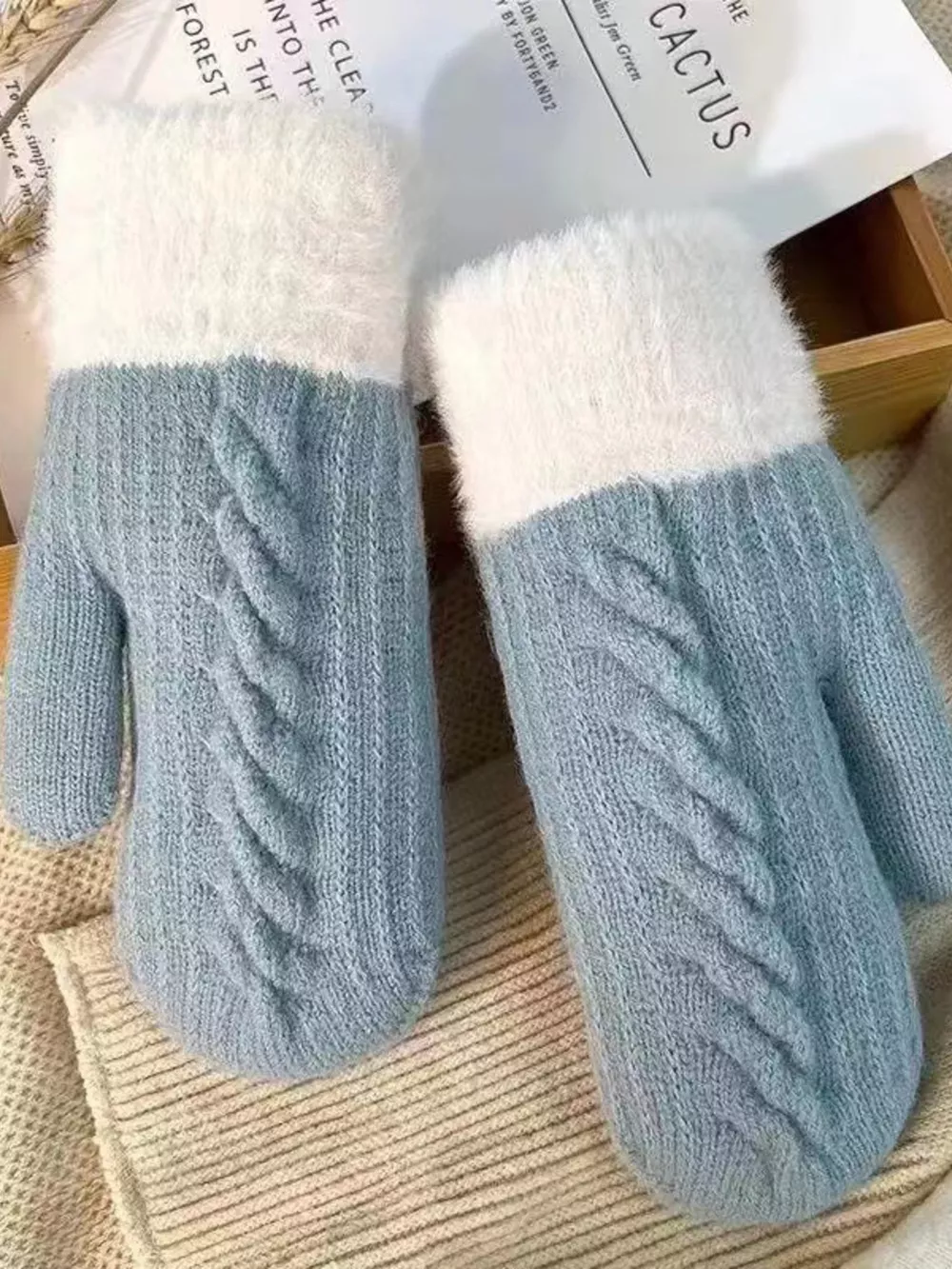 Cozy Knit Mittens with Fur Cuff