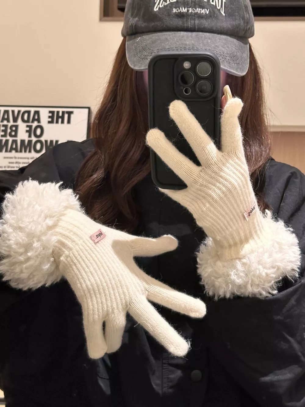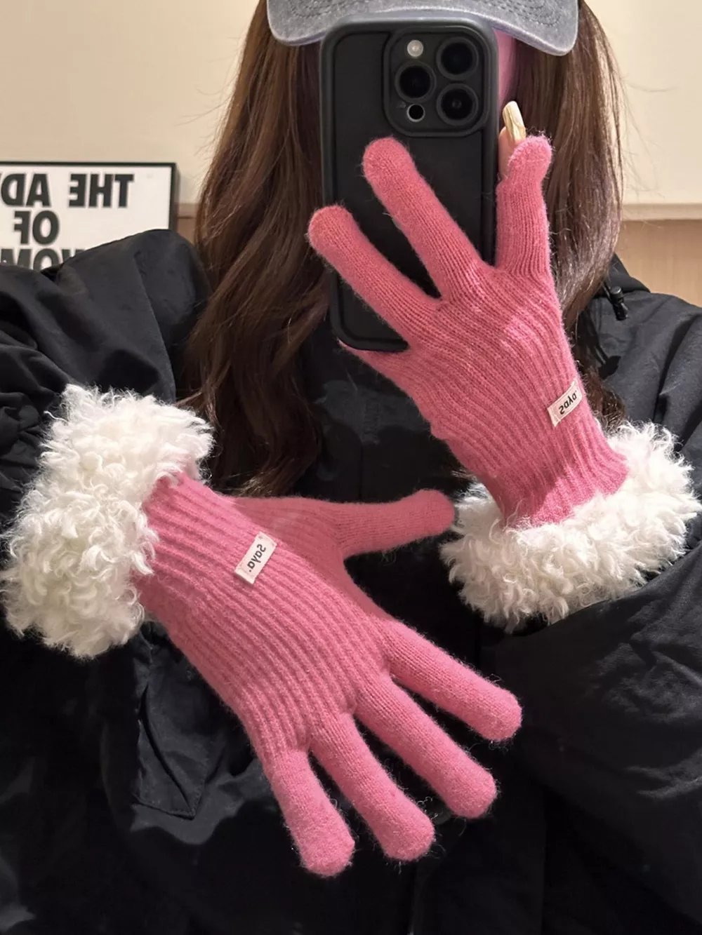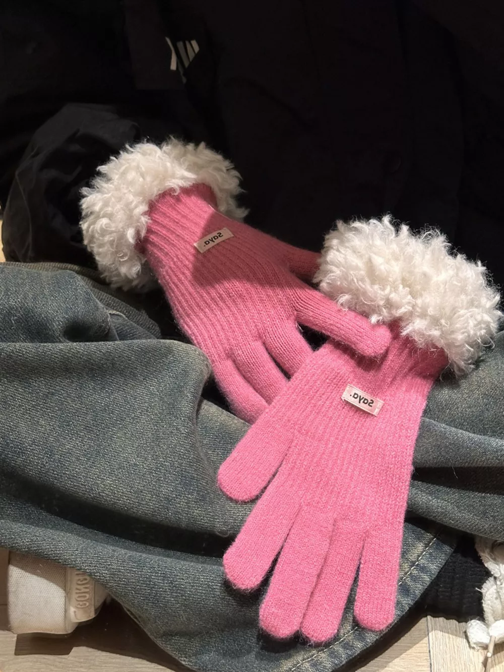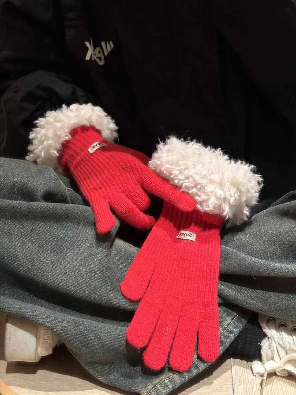 Fuzzy Cuff Knitted Gloves