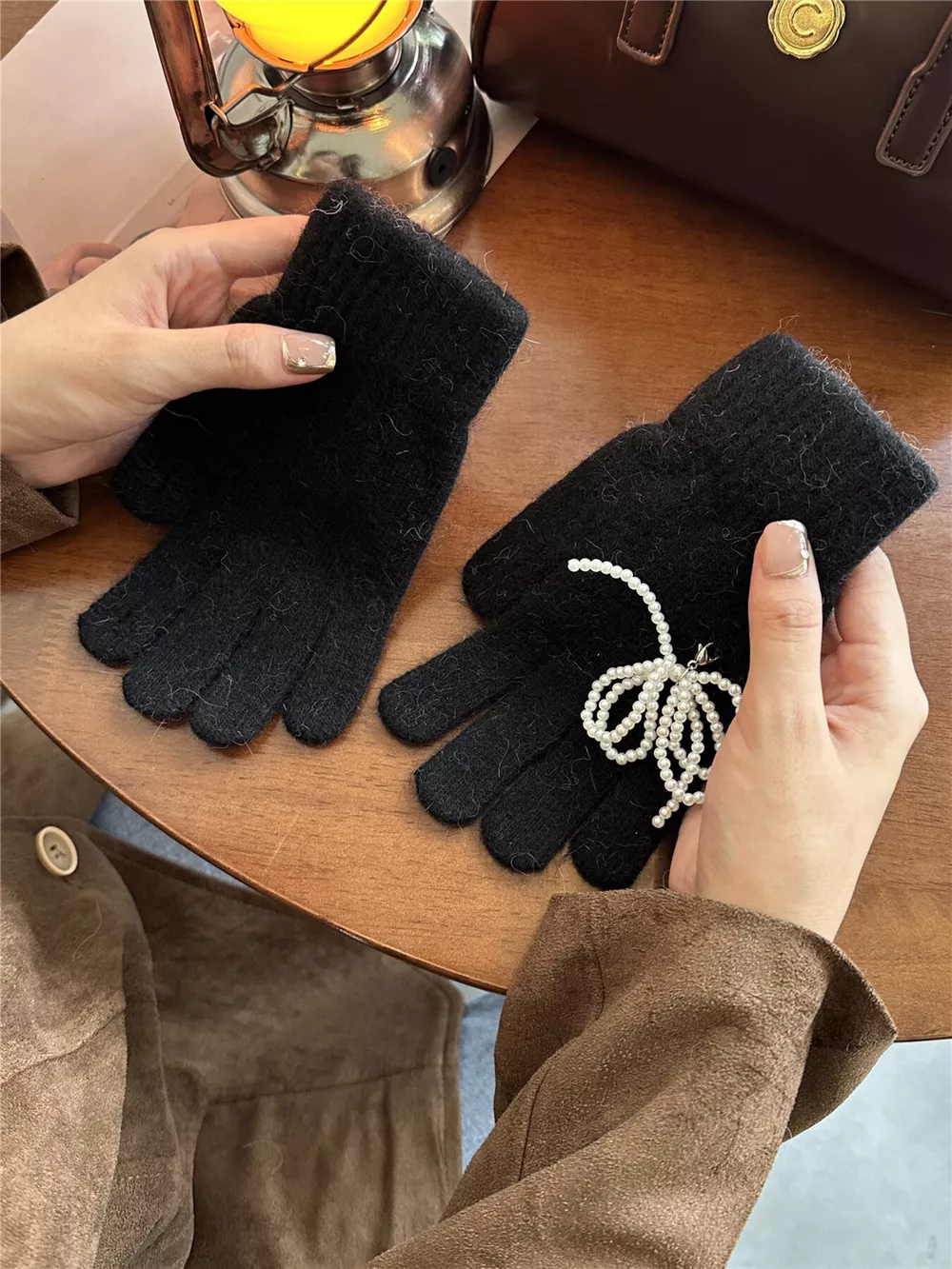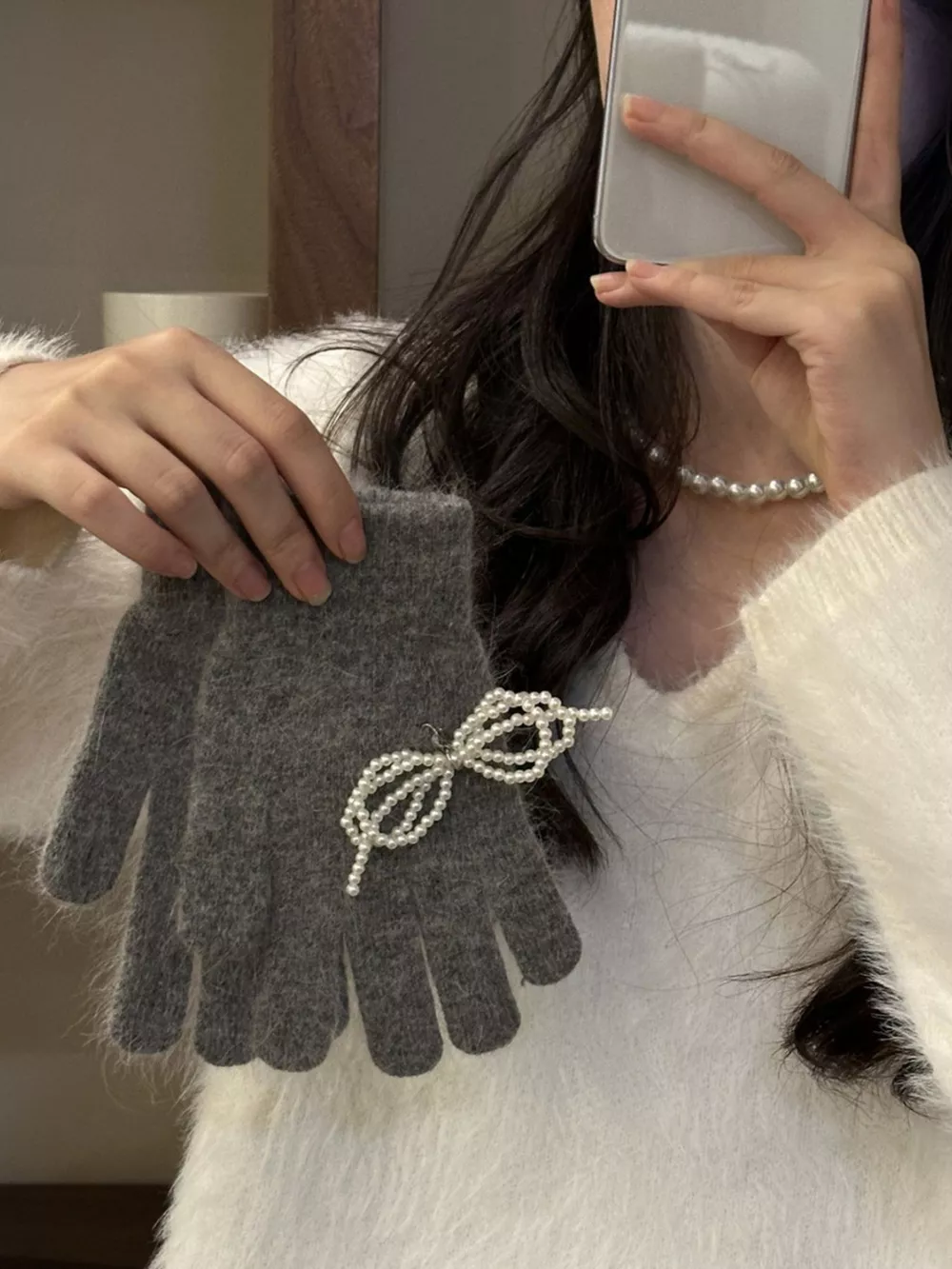 Pearl Embellished Knit Gloves