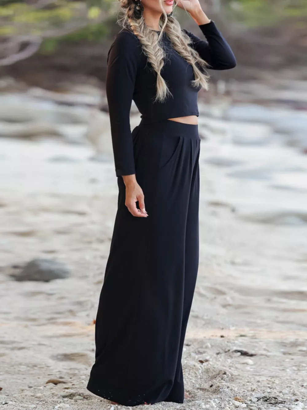 Long Sleeve Crop Top and Wide Leg Pants Set
