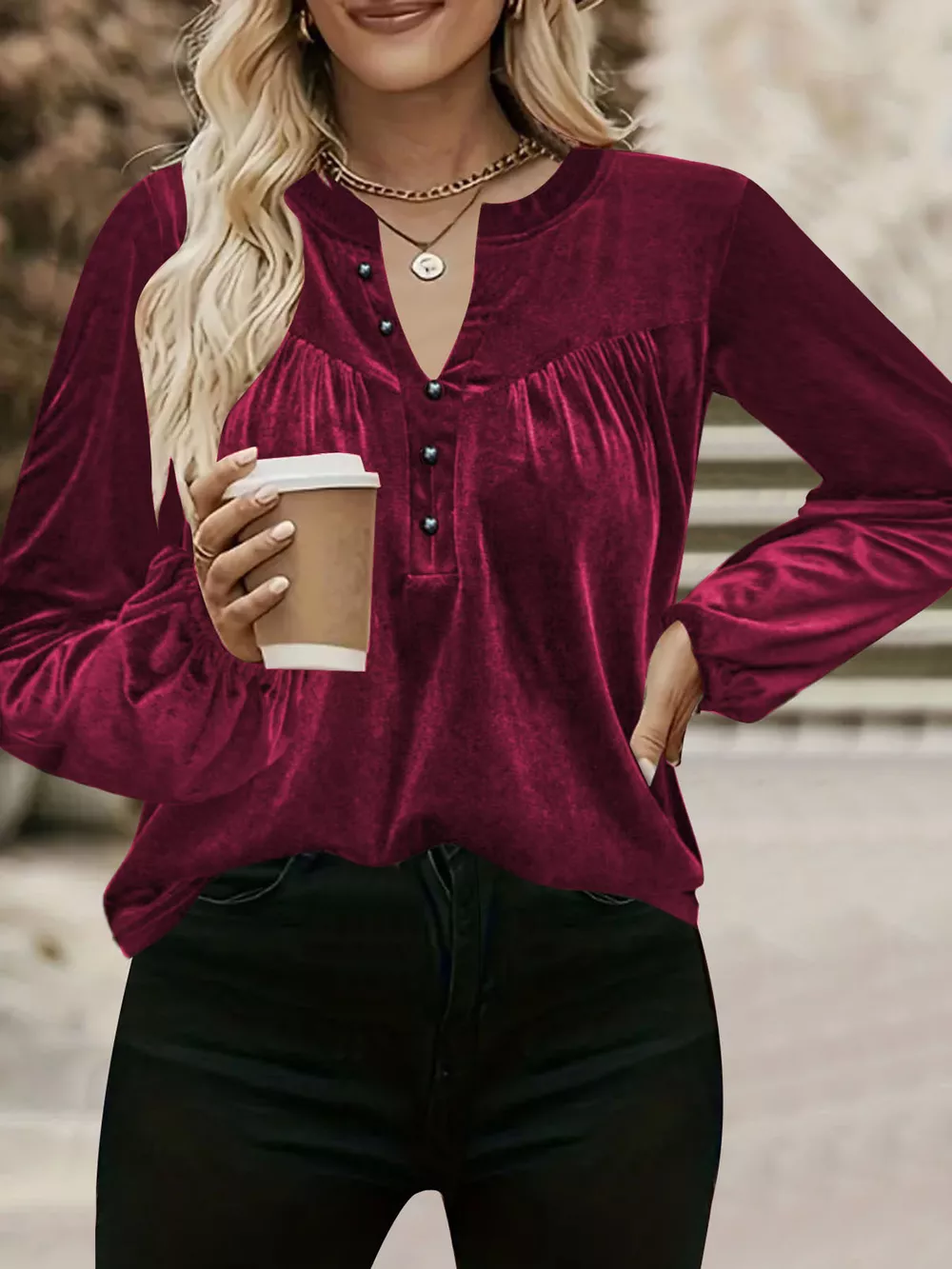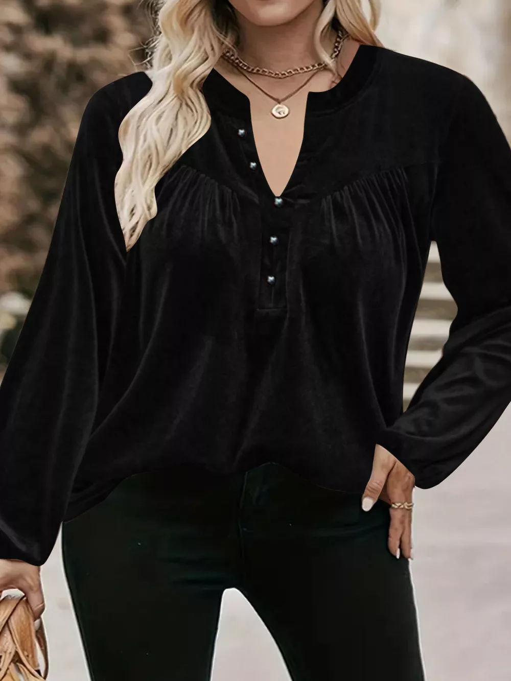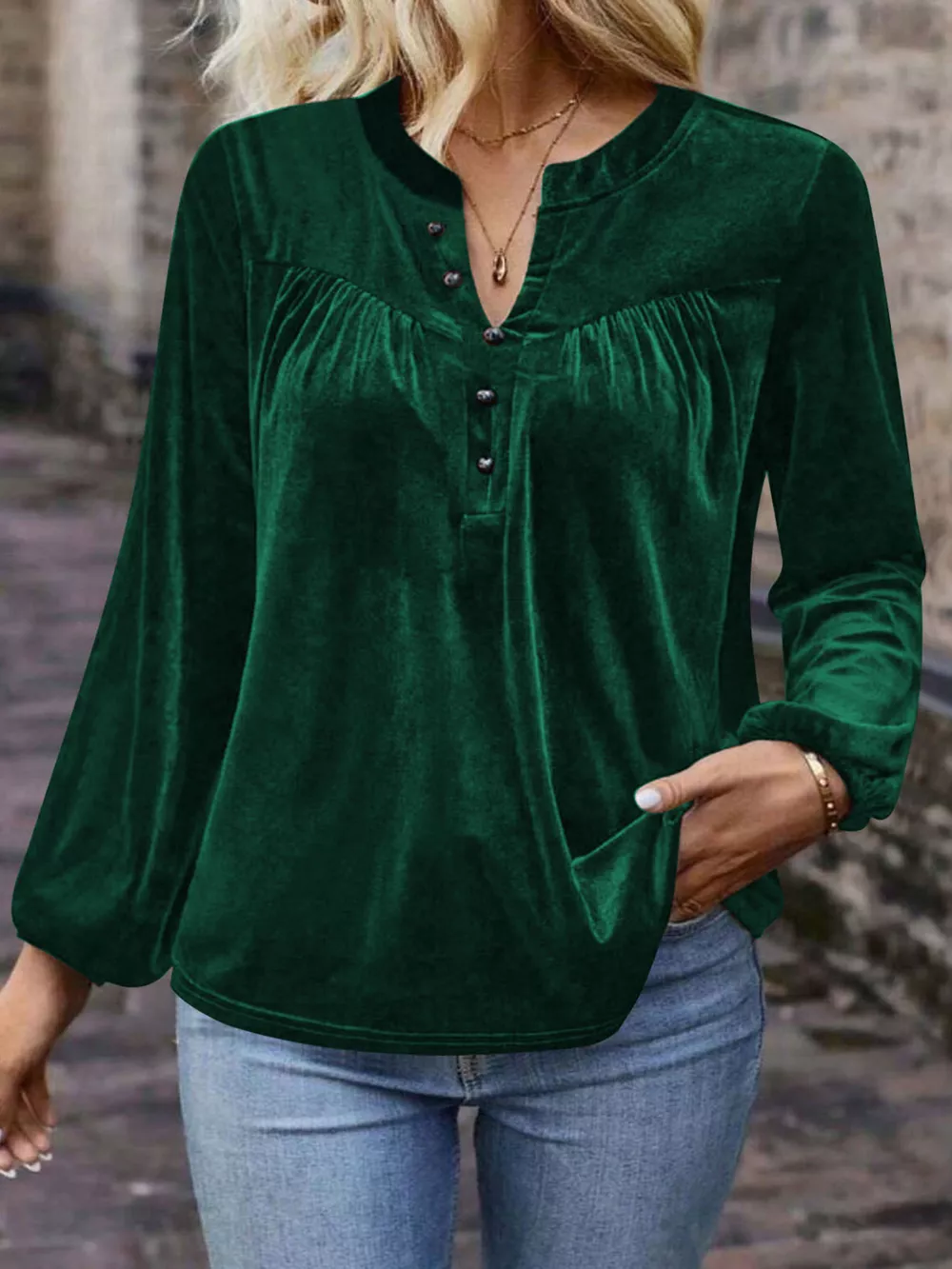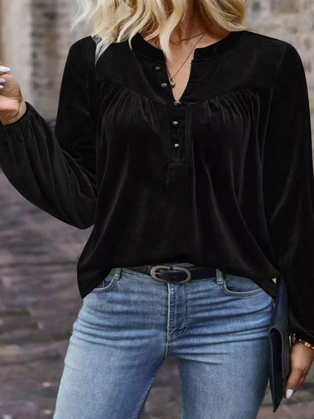Velvet Balloon Sleeve Blouse