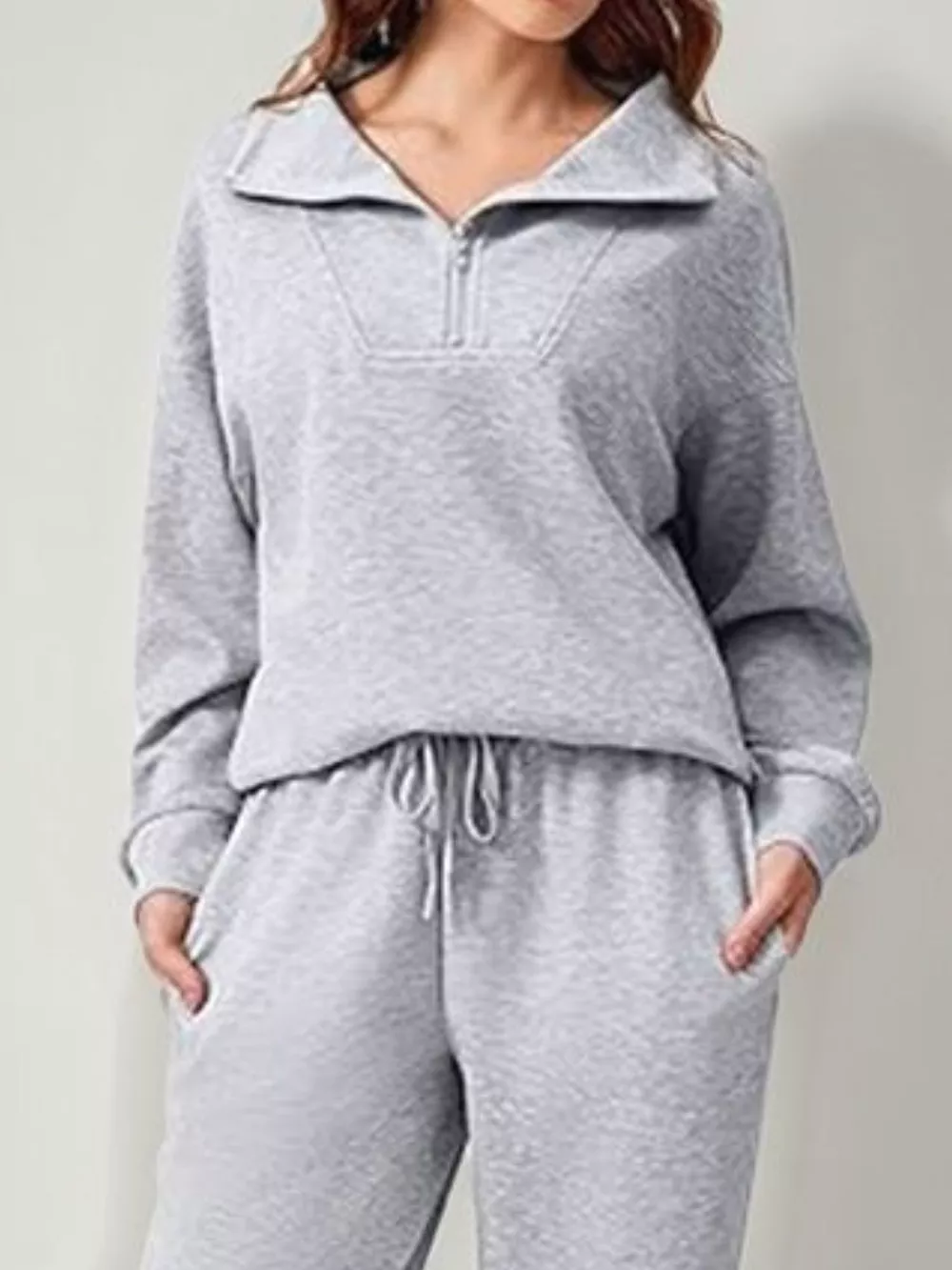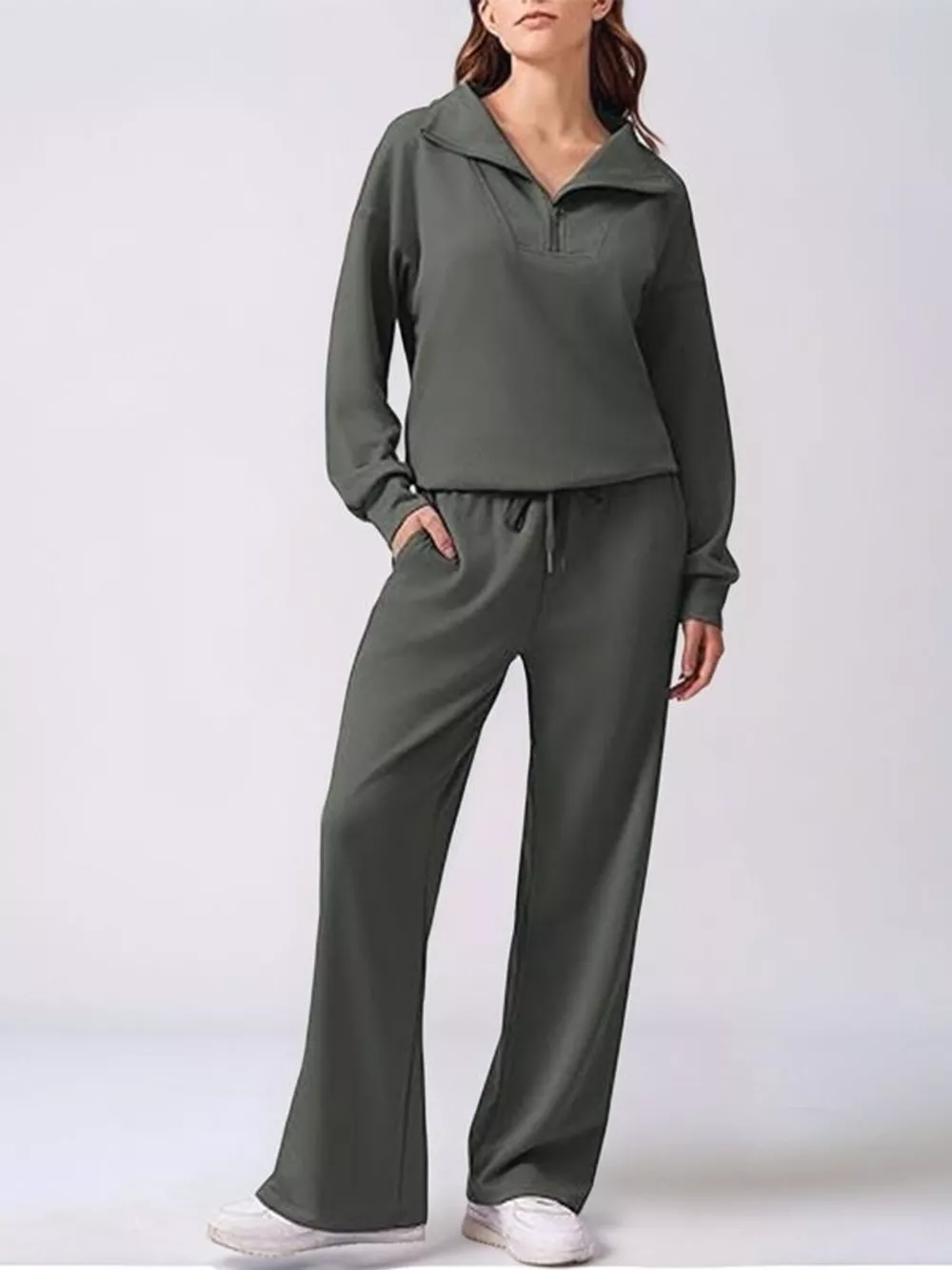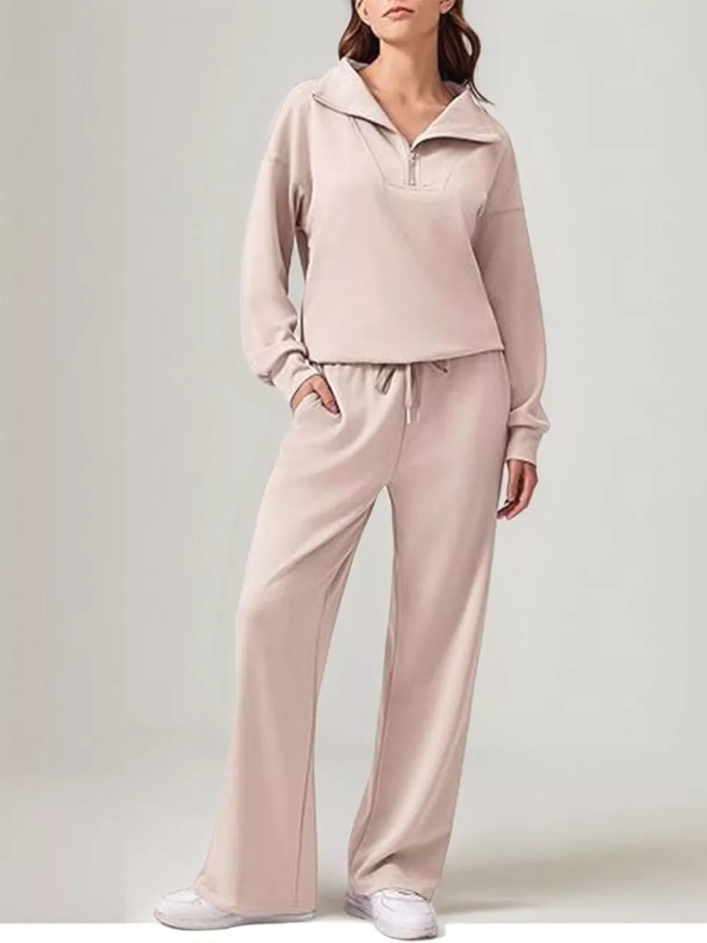 Relaxed Fit Quarter-Zip Top and Pants Set
