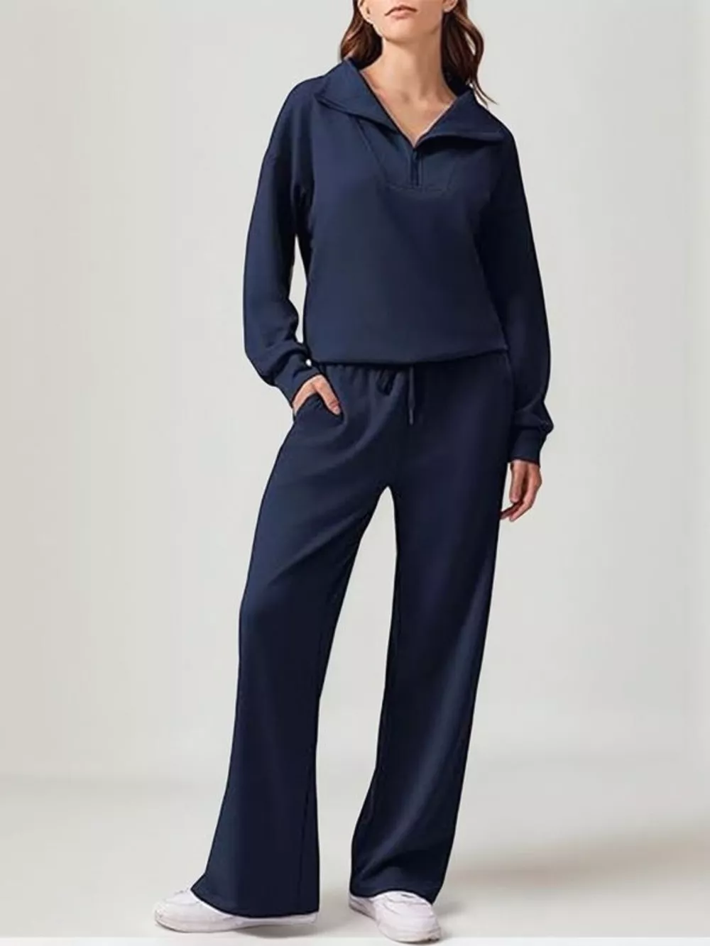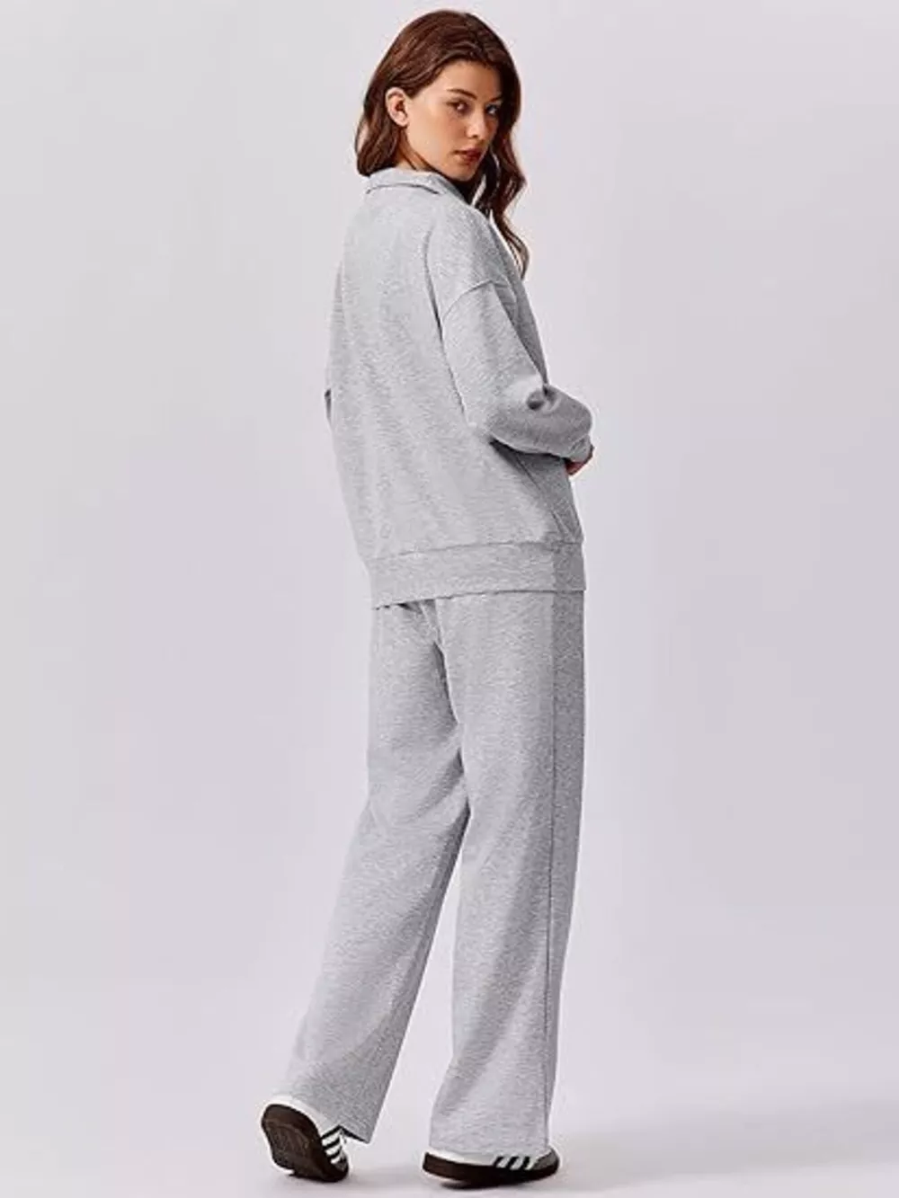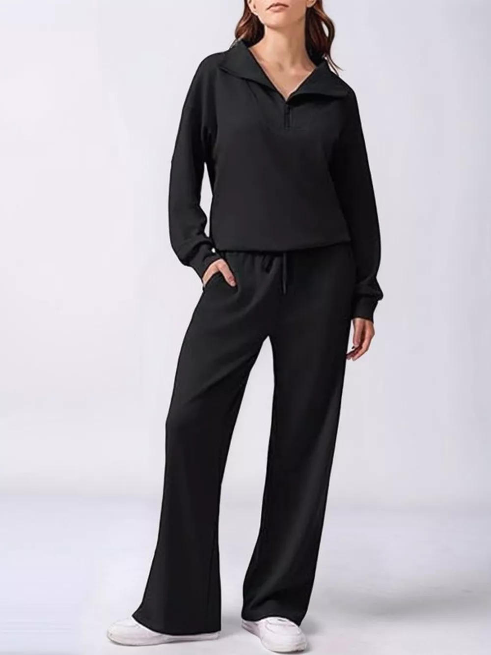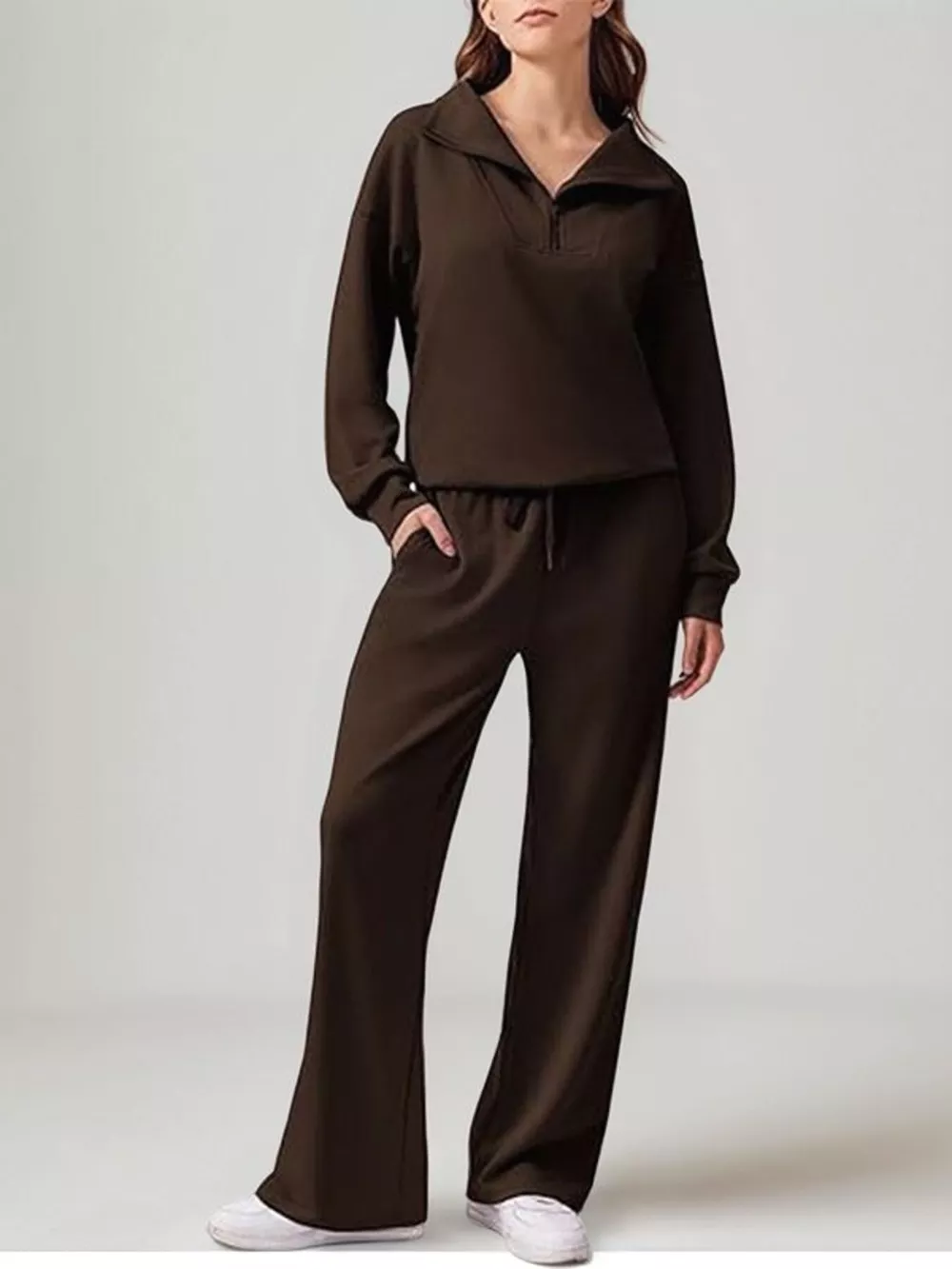 Relaxed Fit Quarter-Zip Top and Pants Set