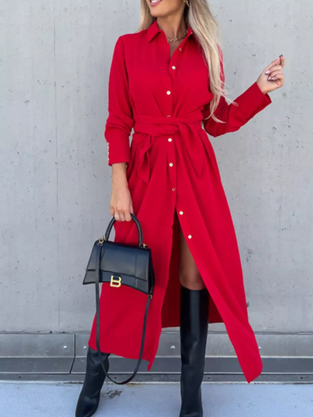 - Features:Buttoned,Belted,Split