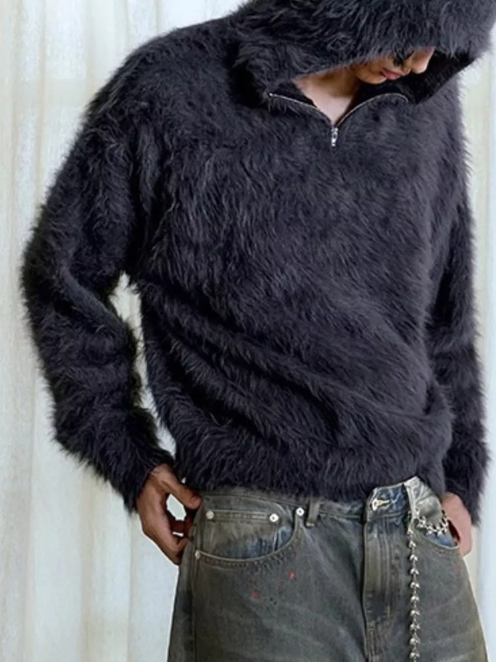 Men's Cozy Faux Fur Quarter-Zip Sweater
