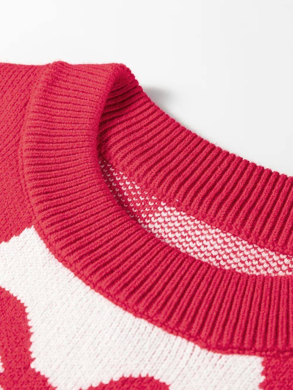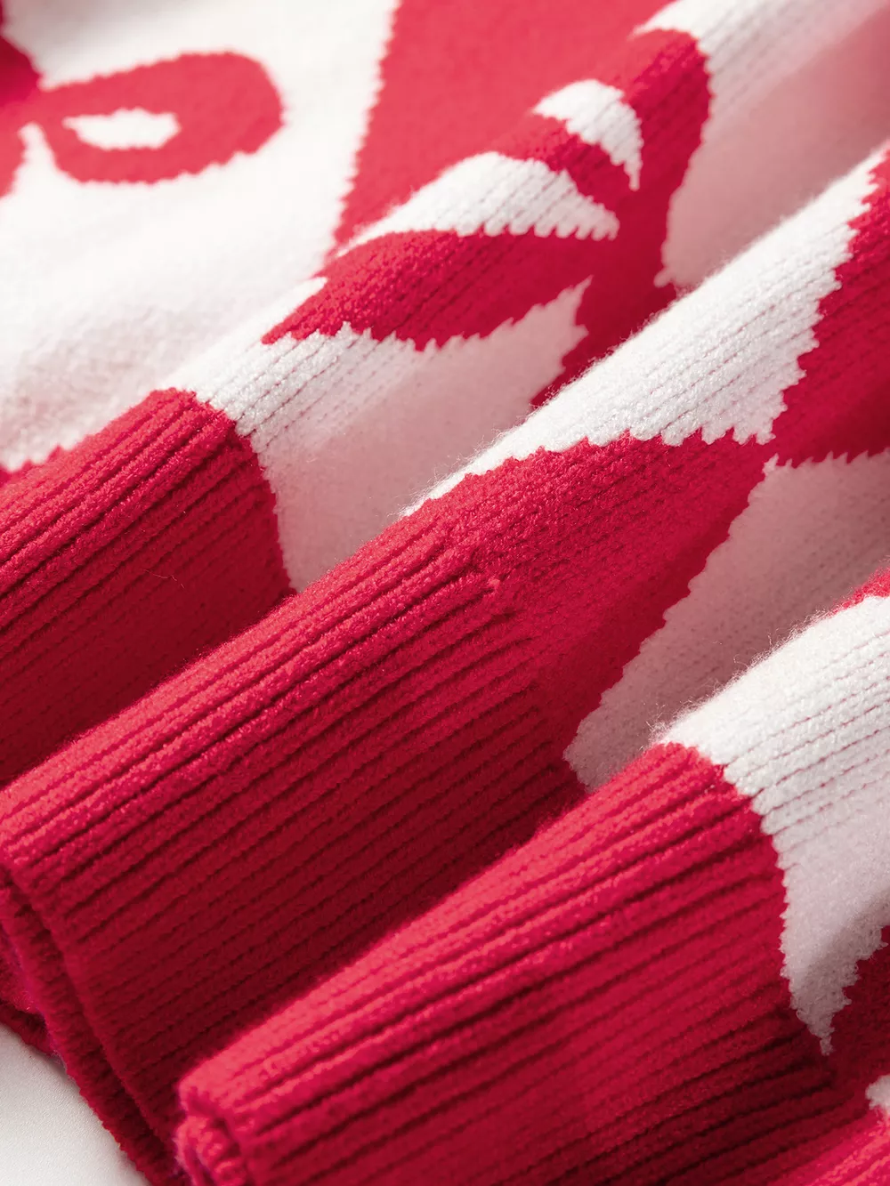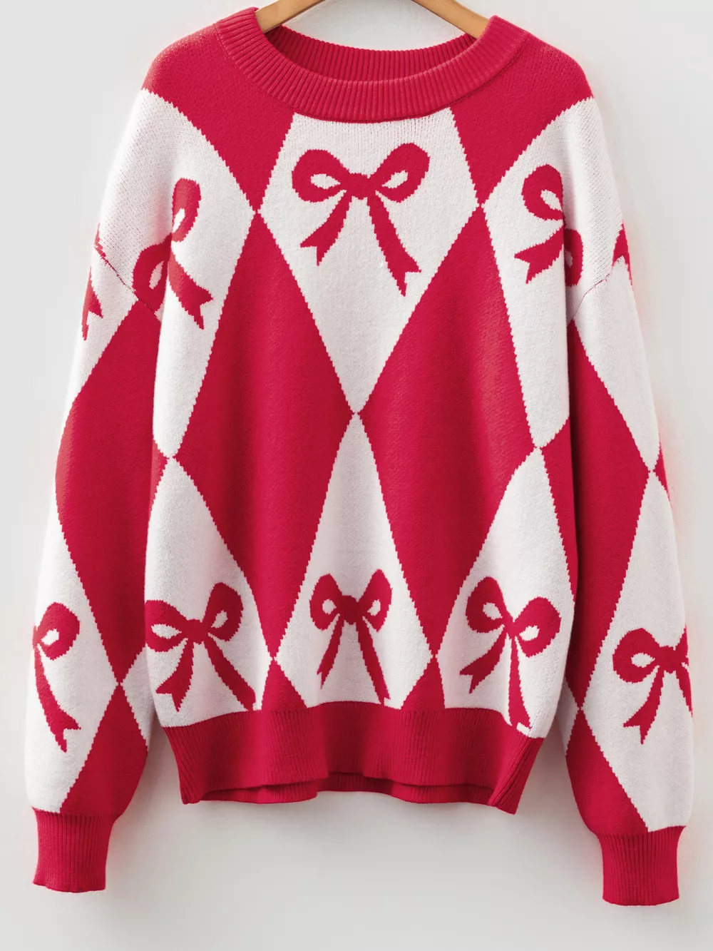Bow Print 2-Tone Rhombus Knit Loose Sweater