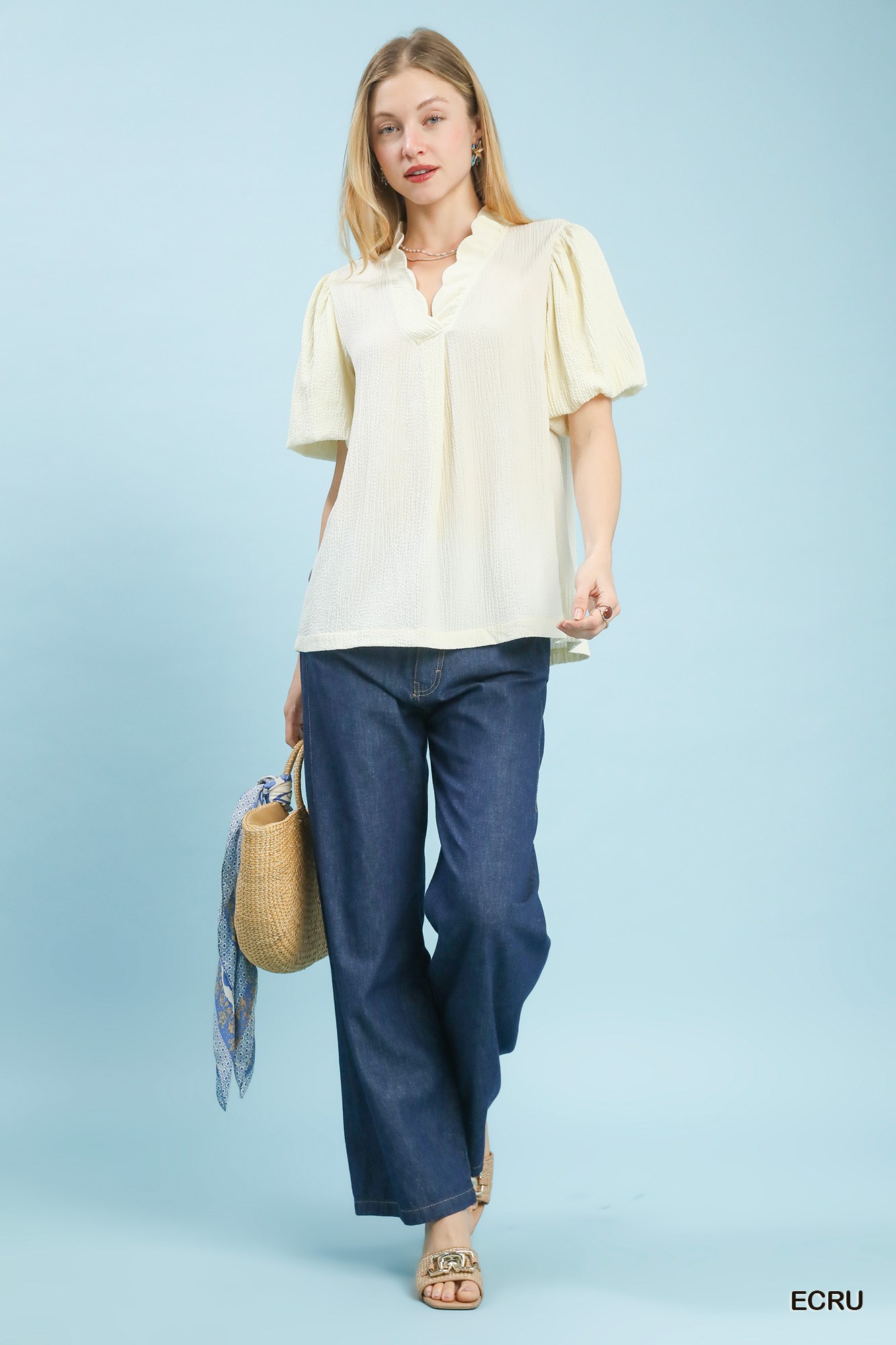 Umgee Seersucker Puff Sleeve Blouse