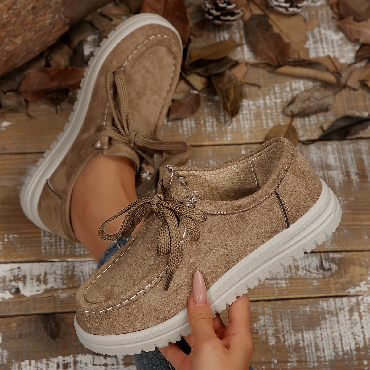 Lace-Up Round Toe Loafers