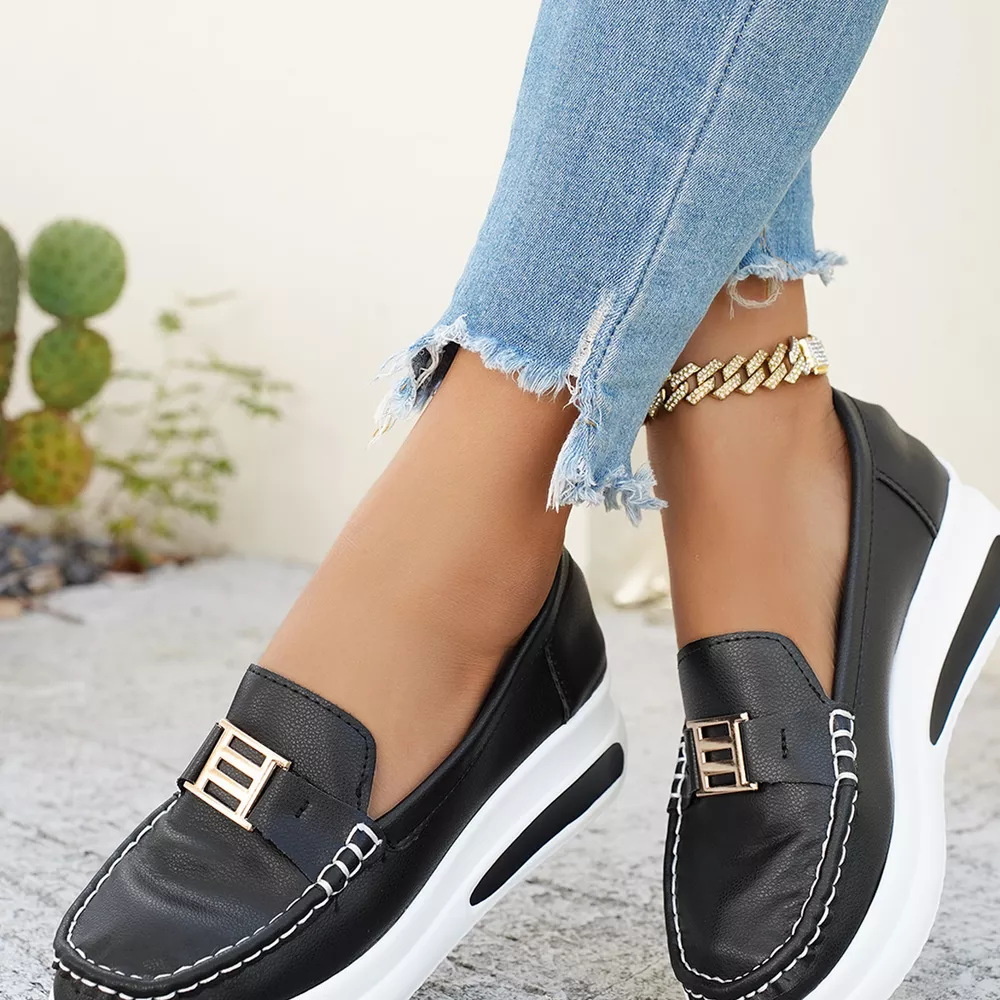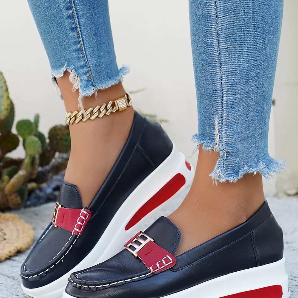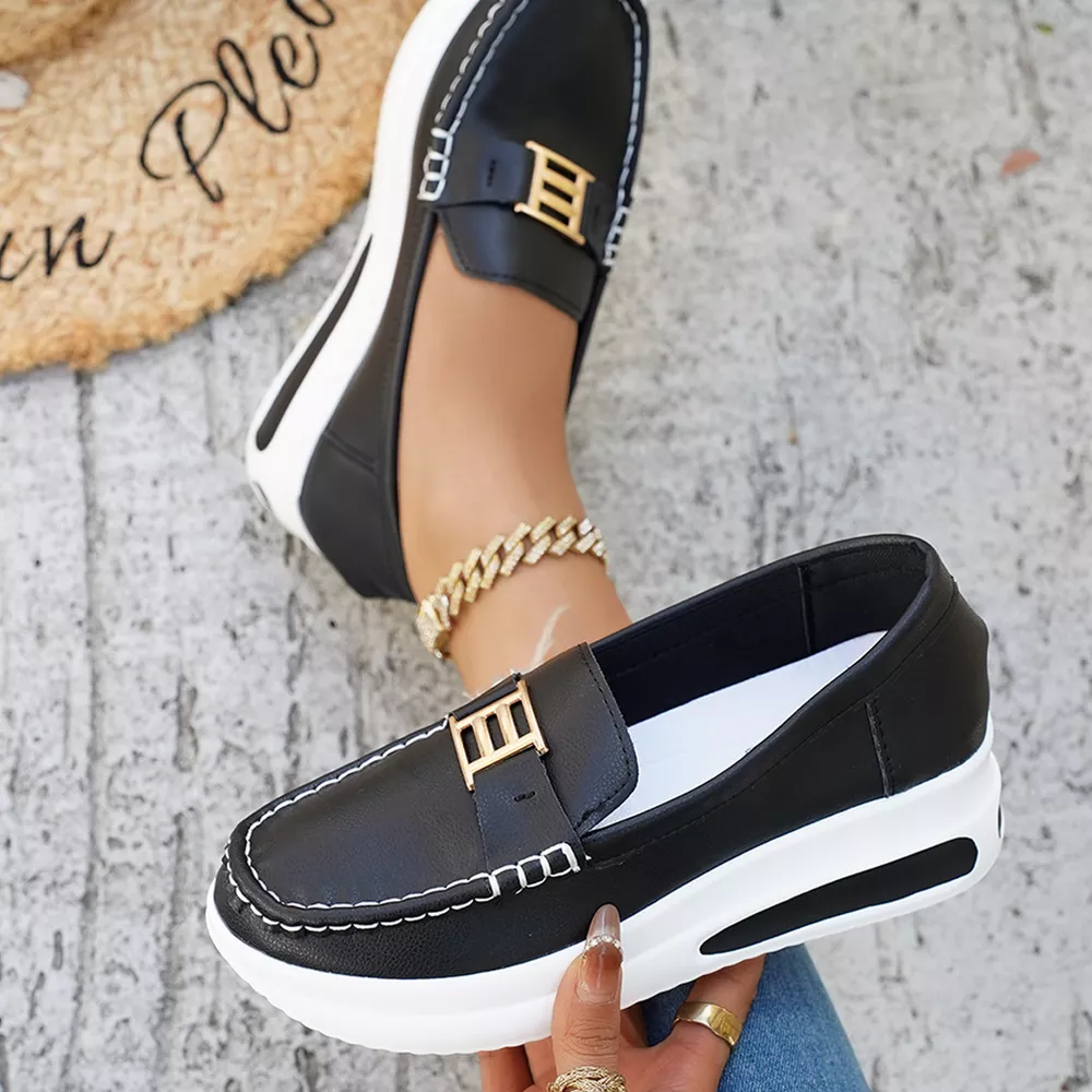 Metal Buckle Round Toe Slip-Ons
