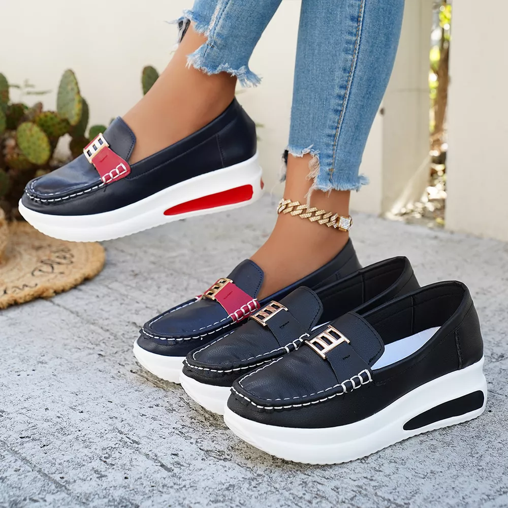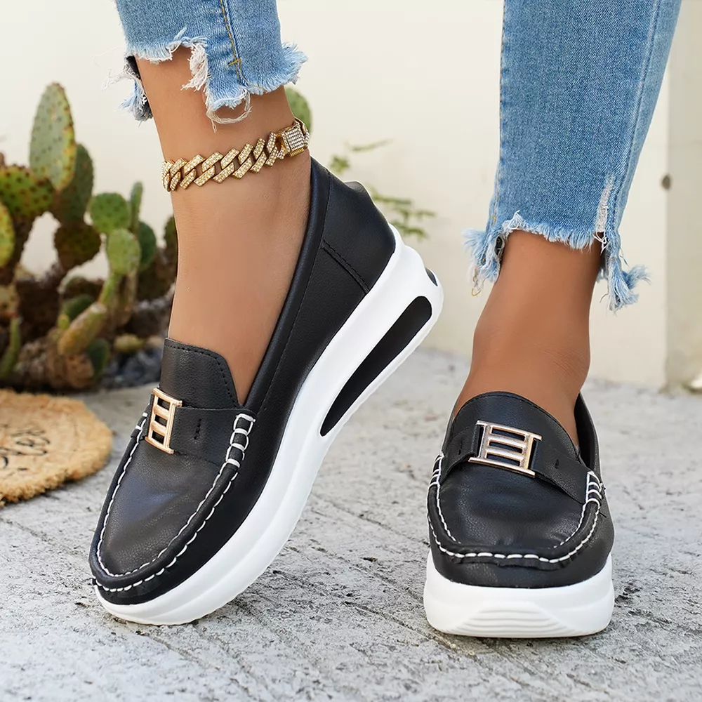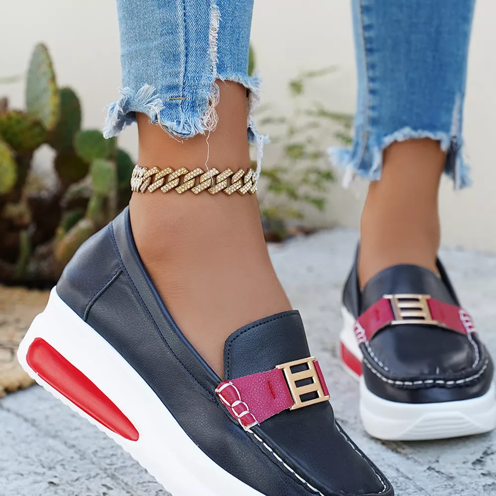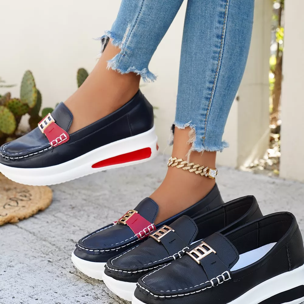 Metal Buckle Round Toe Slip-Ons