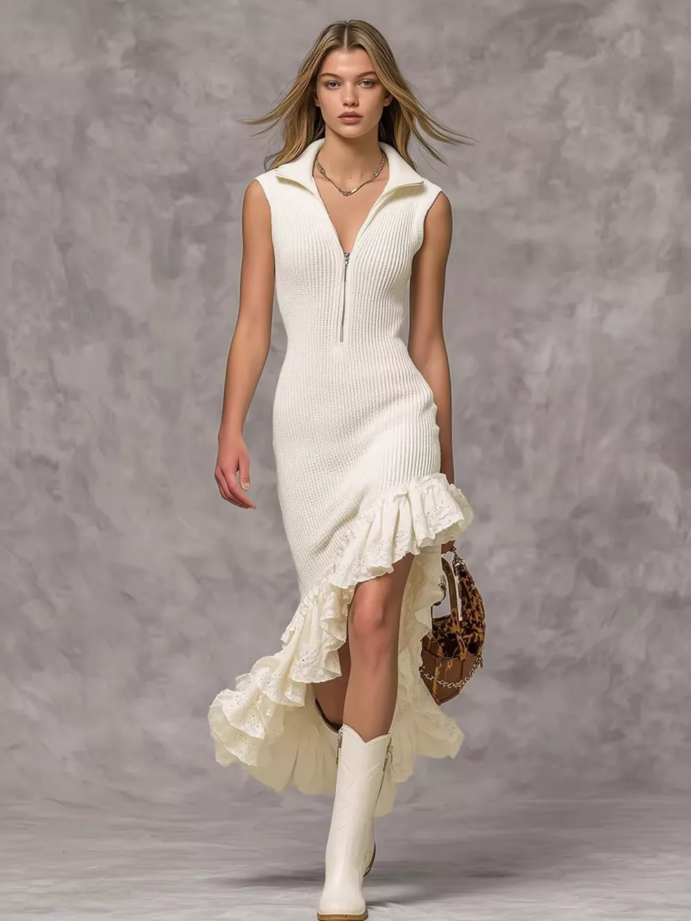 - Features:Zipper,Ruffled