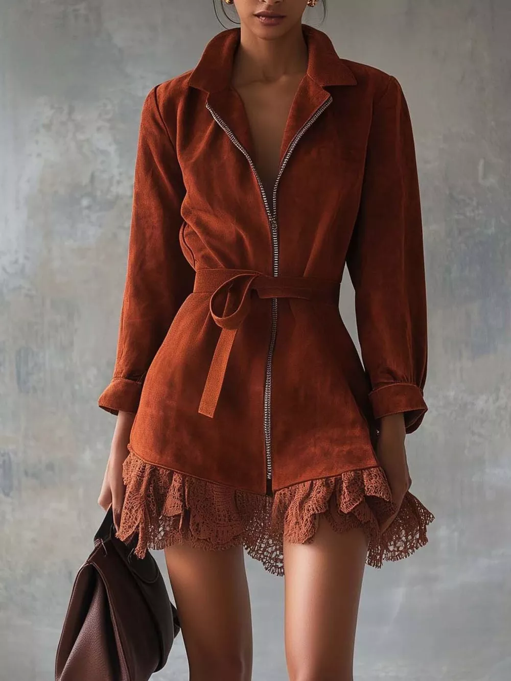 - Features:Lace,Belted,Zipper