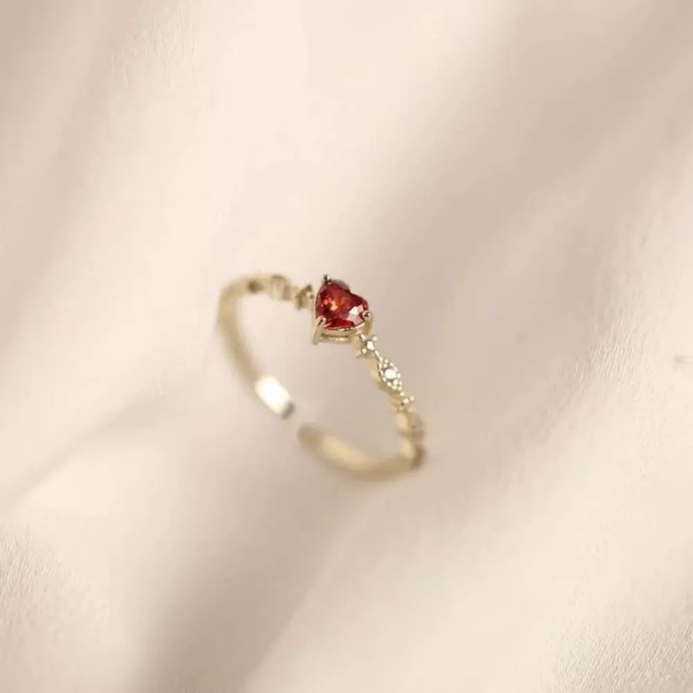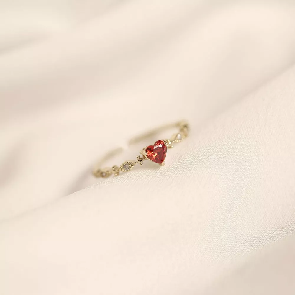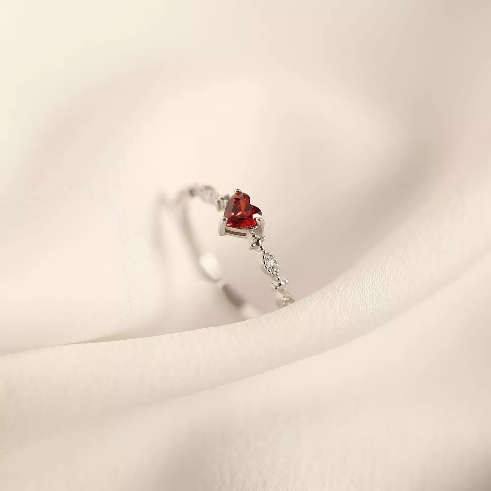 925 Sterling Silver Zircon Heart Open Ring