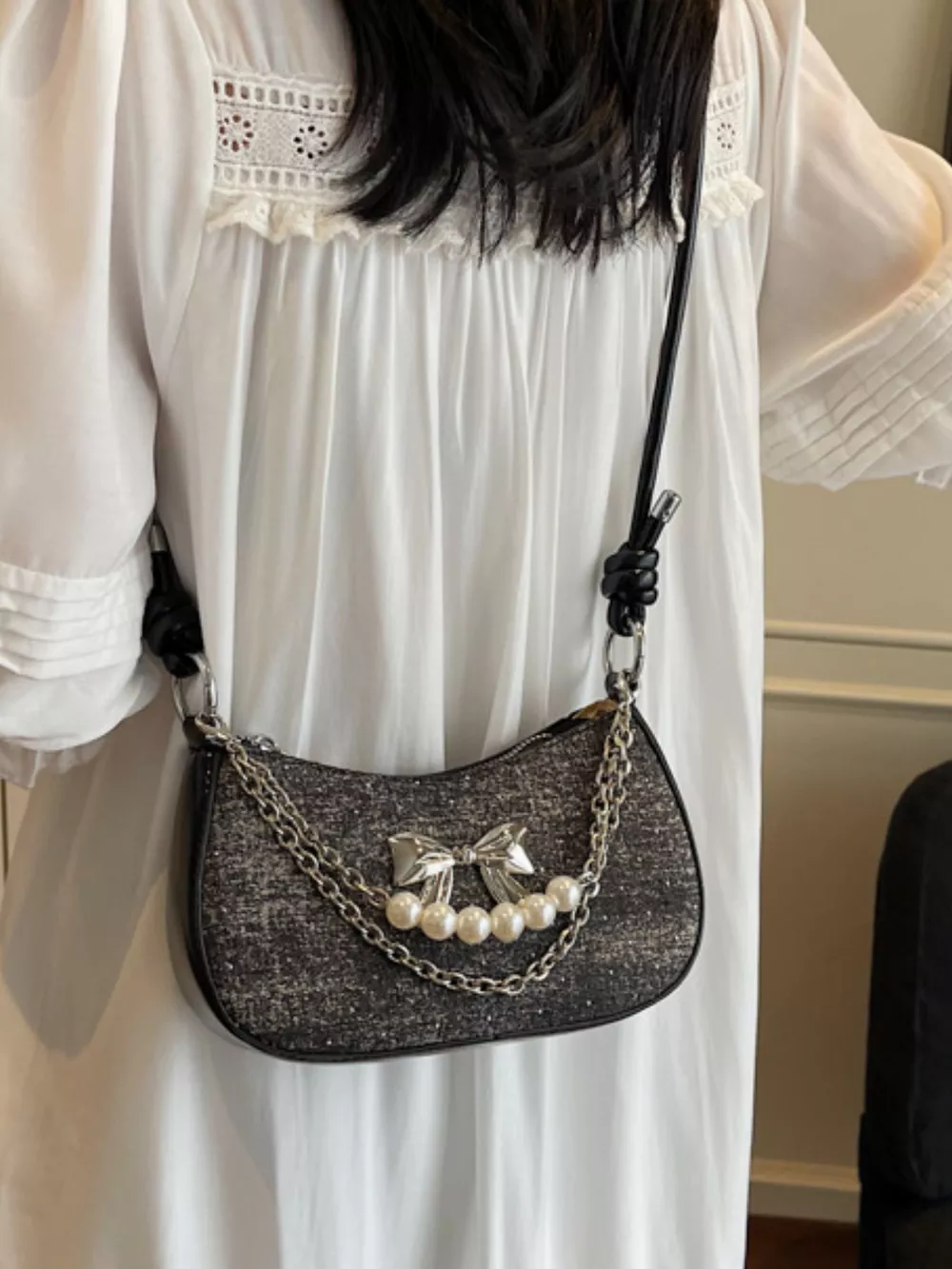 Bow Decor Chain Crossbody Bag