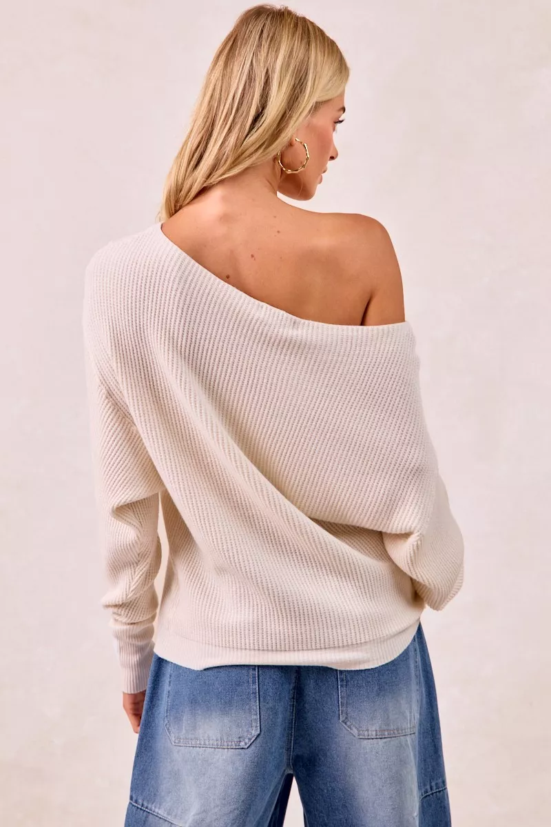 This waffle knit off-shoulder top is a trendy and versatile piece for your wardrobe. The waffle knit texture adds an interesting dimension to the top's design. The off-shoulder style brings a touch of femininity and showcases a hint of skin. This top is great for casual outings or dressing up for a night out. Pair it with high-waisted jeans or a skirt for a stylish and effortless look.