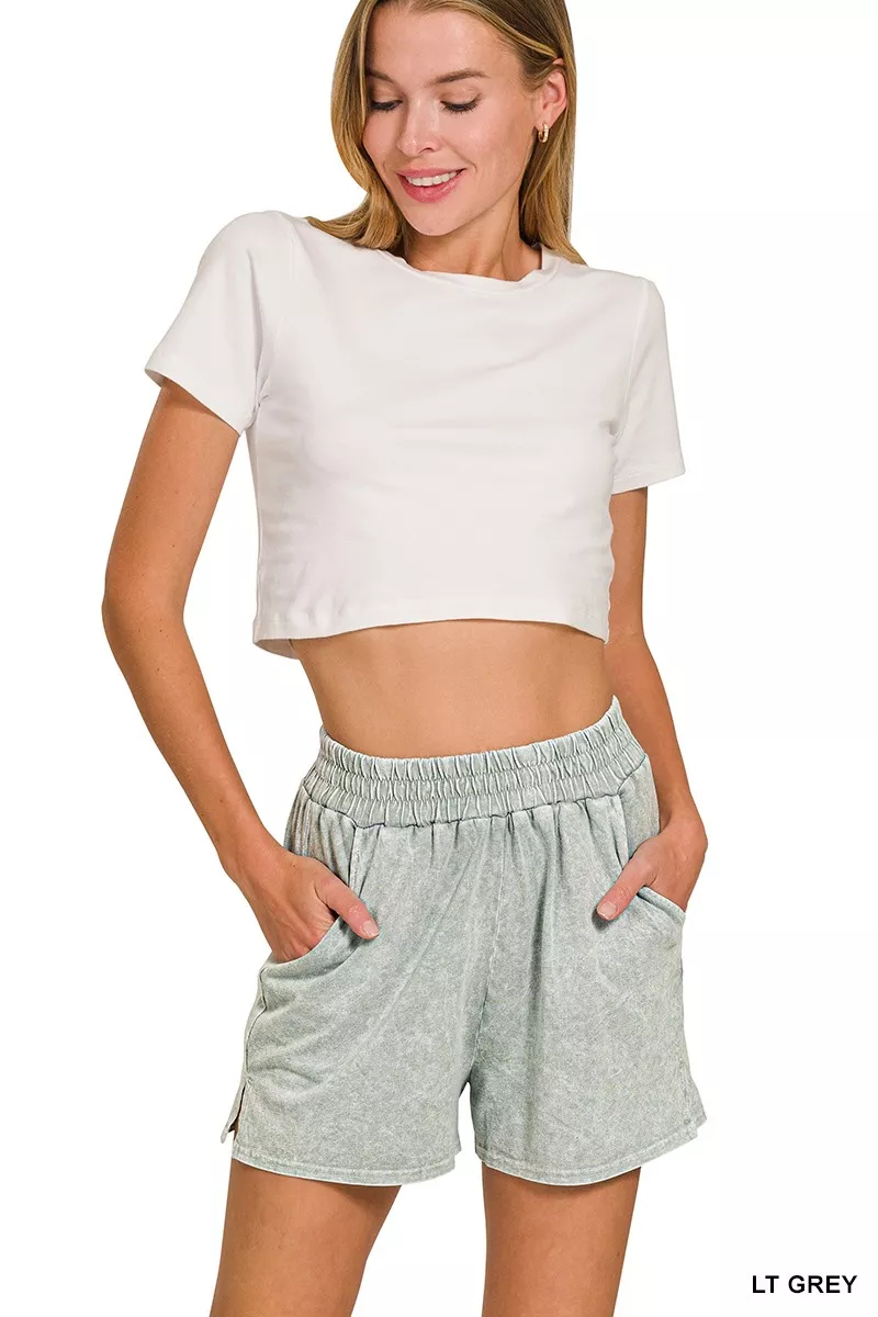 Zenana Halo Snow Washed Short Sleeve Tee and Shorts Set