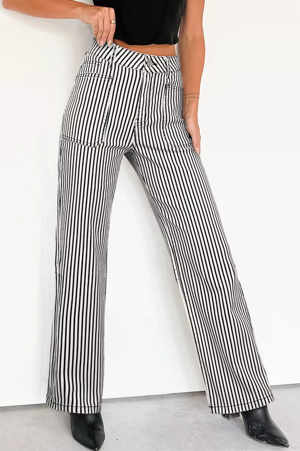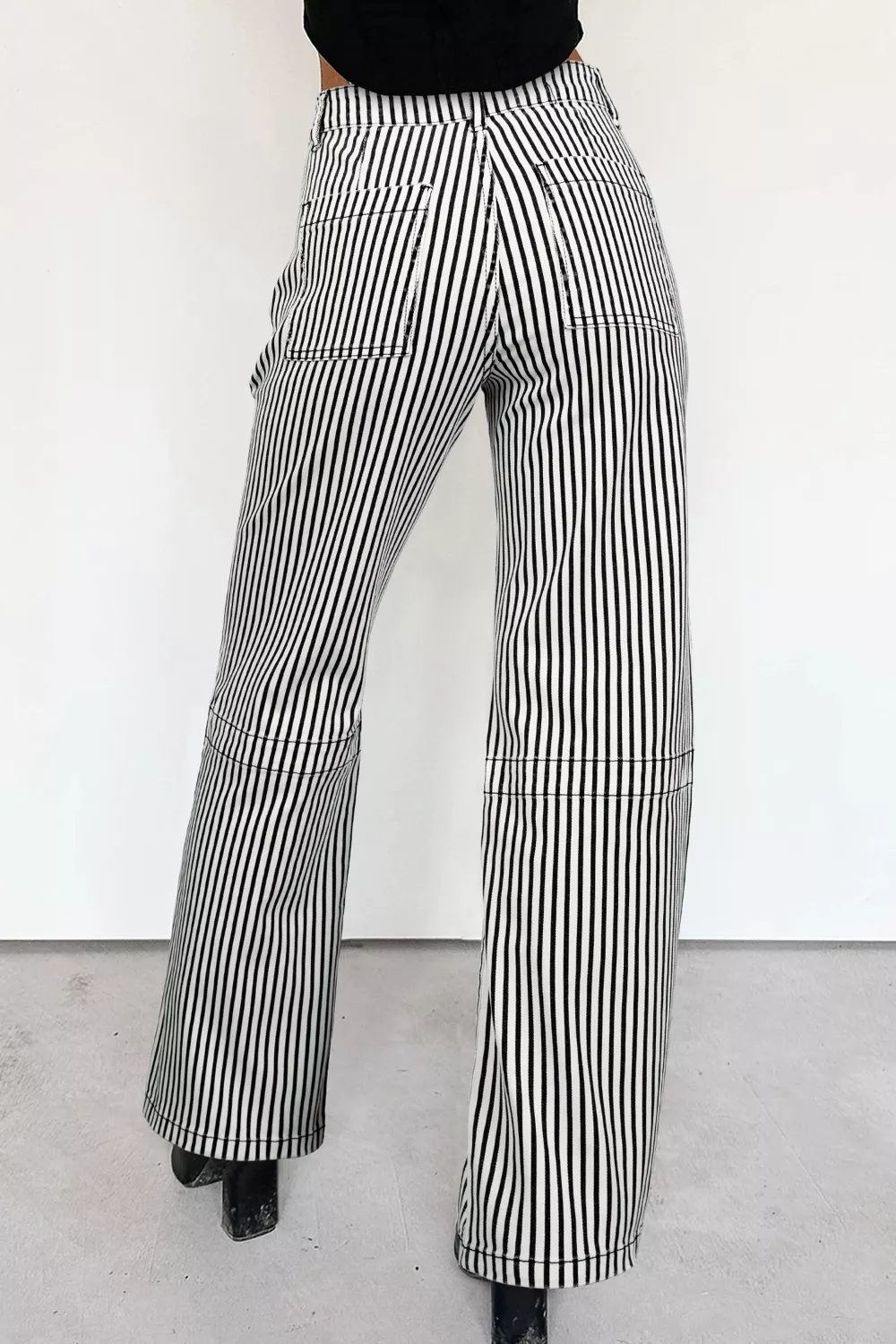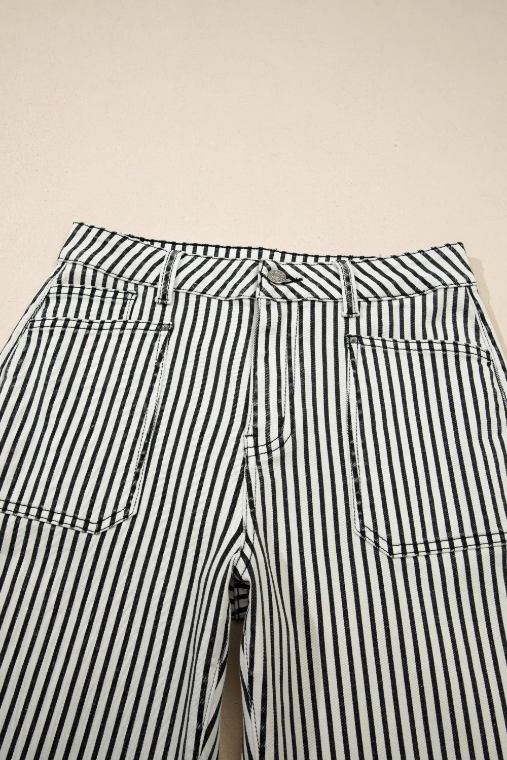 Stripe Patch Pocket High Waist Shift Denim Jeans