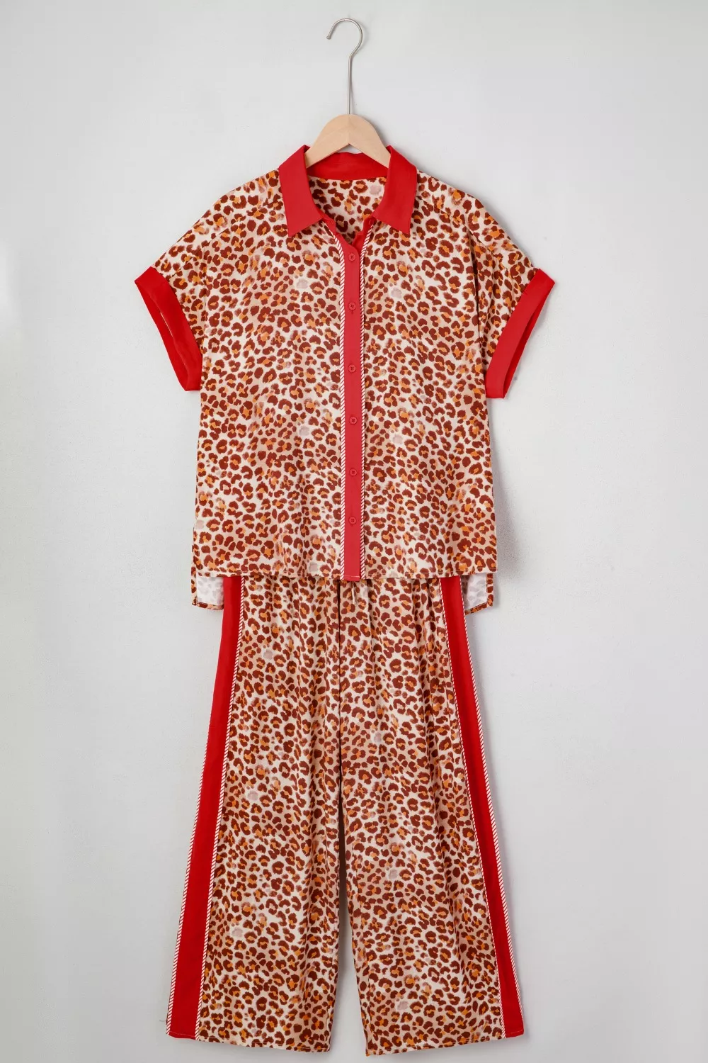 Contrast Trim Leopard Top and Pants Set