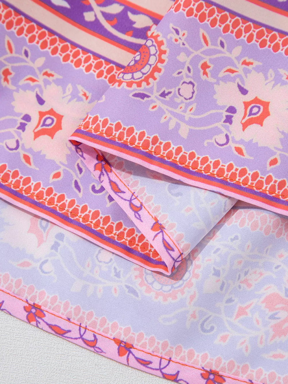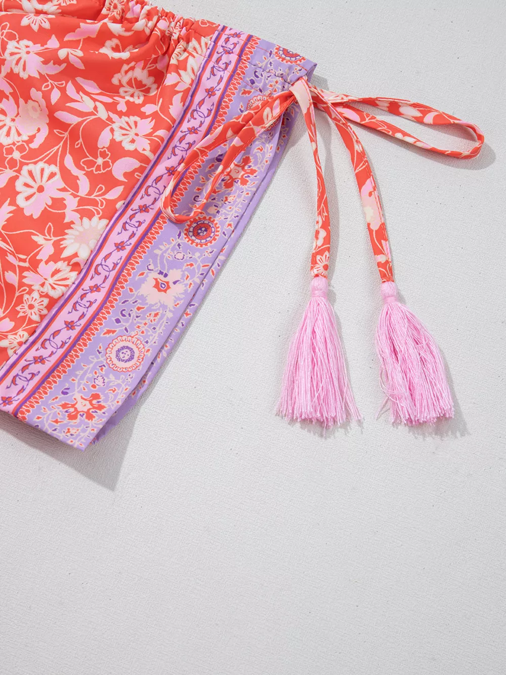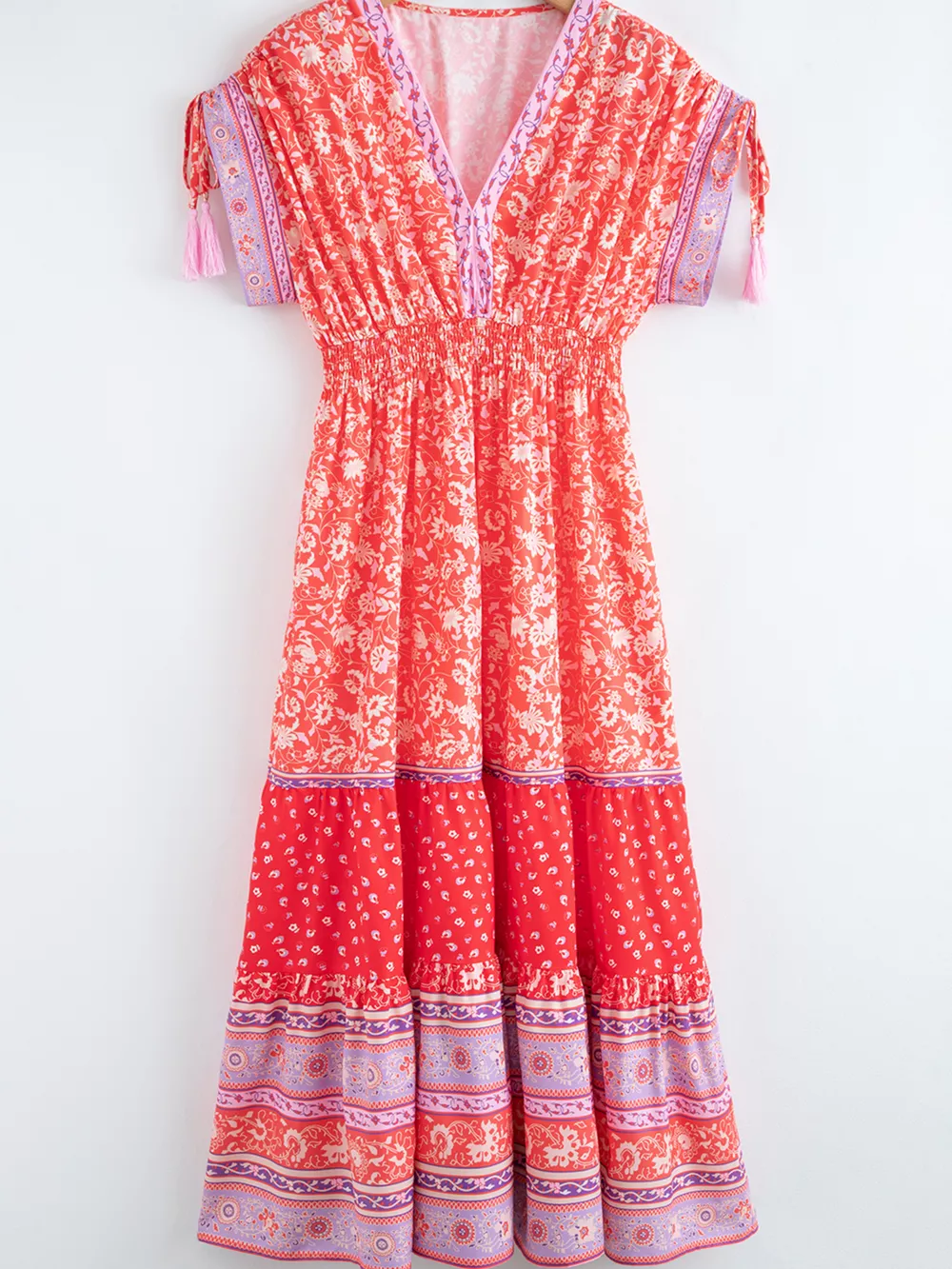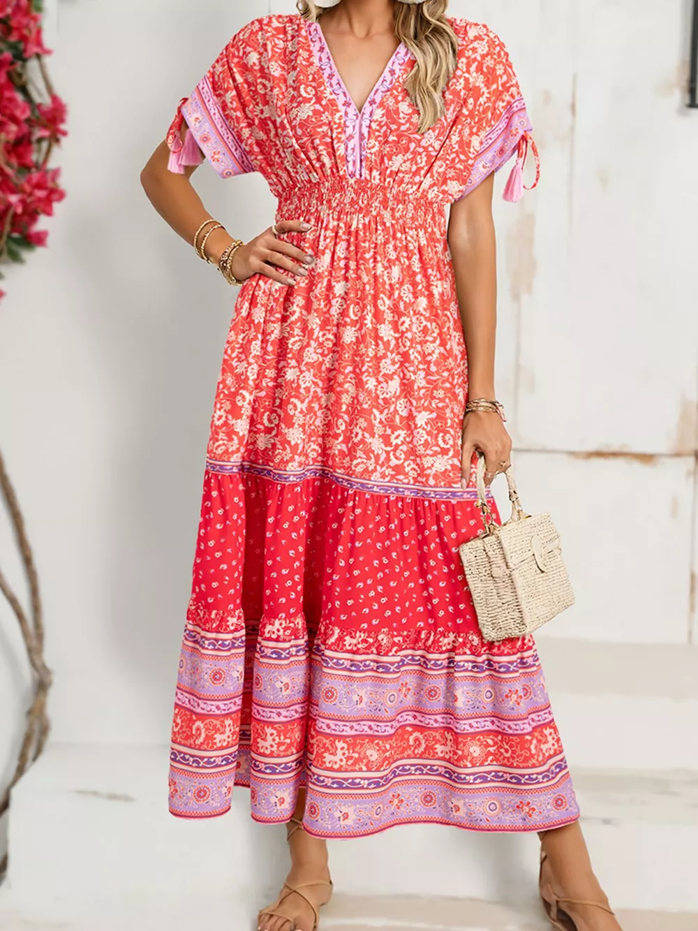 Floral Print Tasseled Tied Sleeve Empire Waist Dress