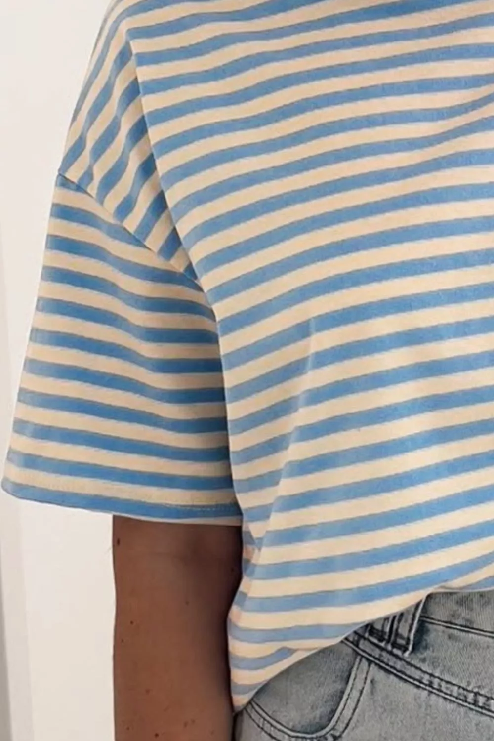 Stripe Contrast Crew Neck Drop Shoulder Loose Tee