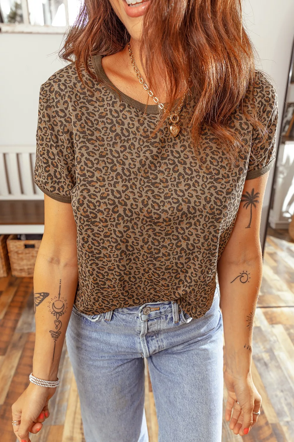 Fierce Leopard Crew Neck T Shirt