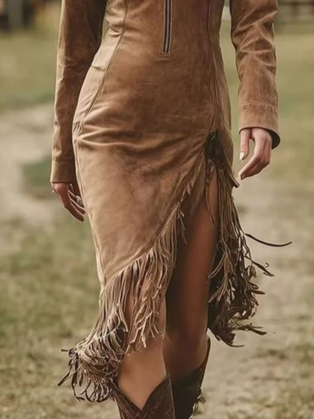- Features:Slit,Zipper,Tassel