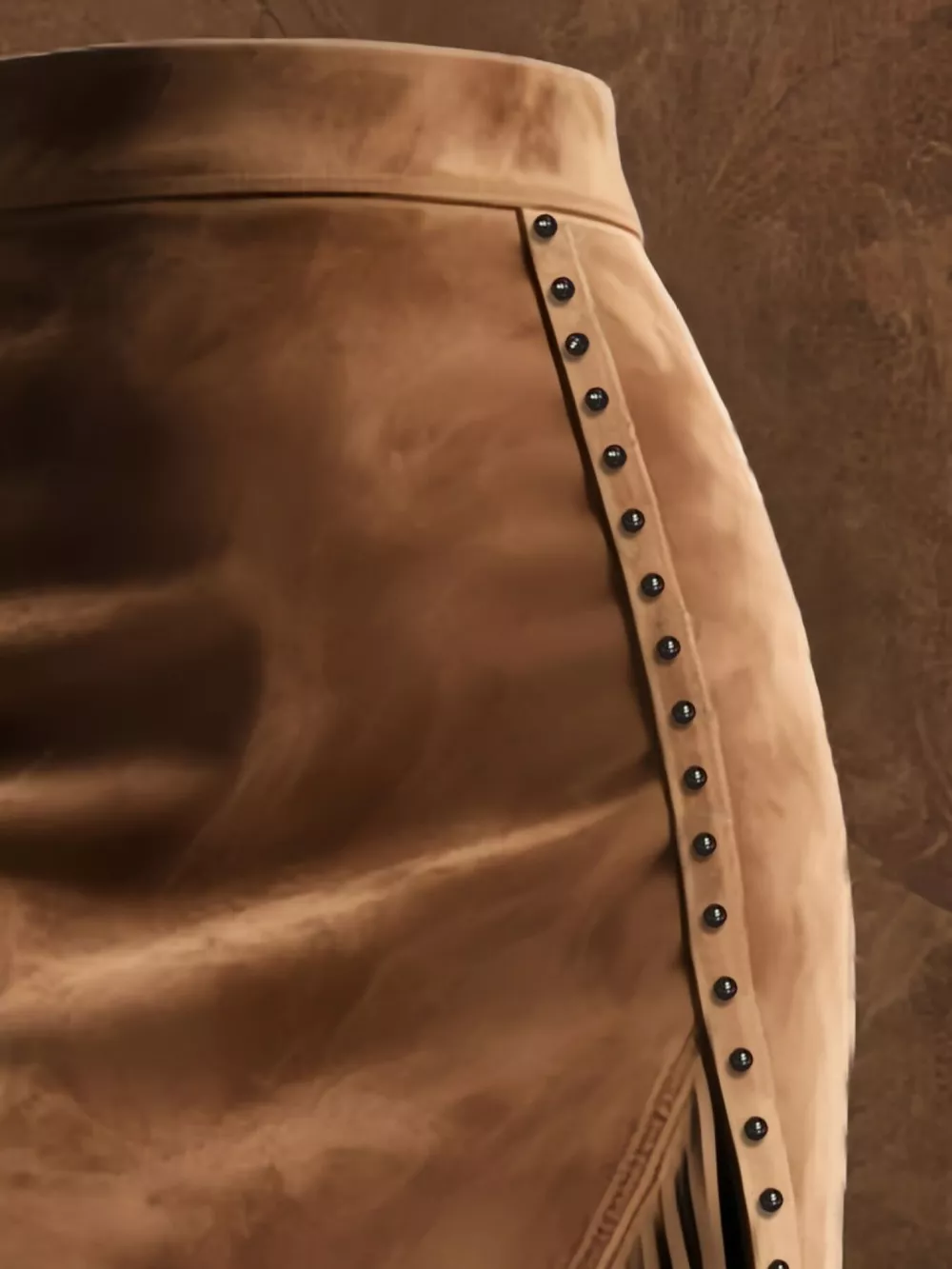Studded Suede Fringe Midi Skirt