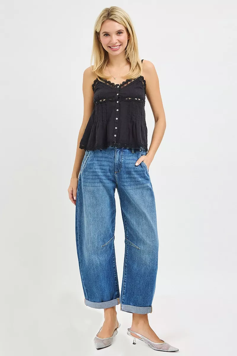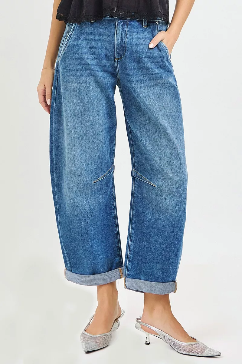 RISEN Slouchy Cropped Barrel Jeans With Cuffed Hem