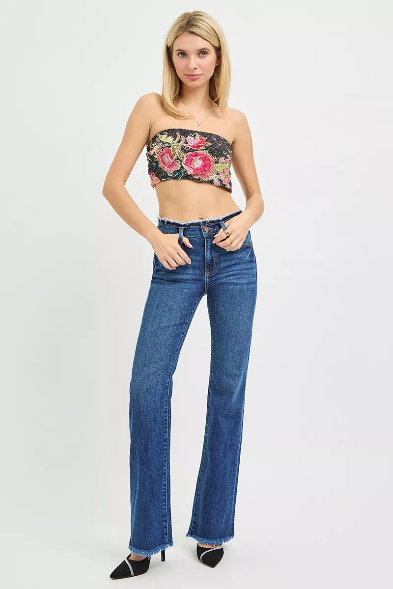 RISEN Full Size Mid Rise Bootcut Frayed Waistband Hem Detail Jeans Plus Size
