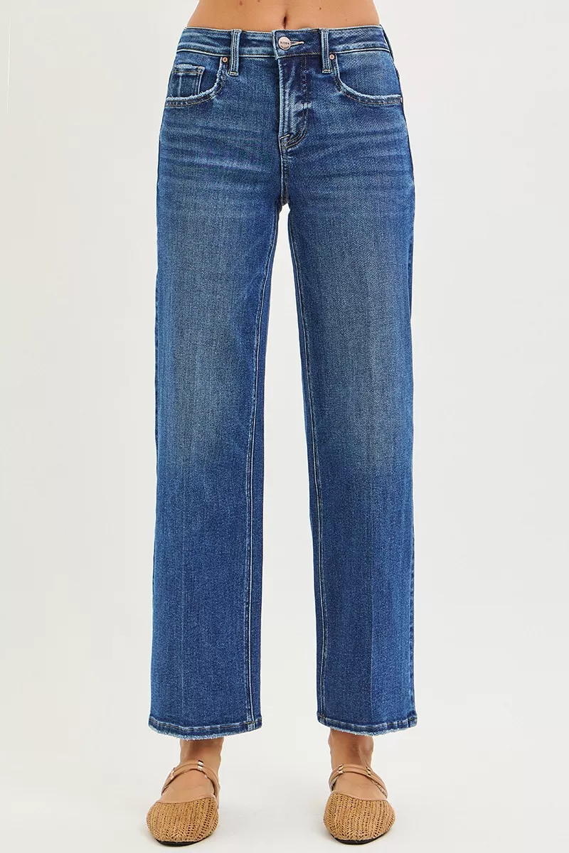 RISEN Tummy Control High Rise Ankle Straight Jeans with Crease Line