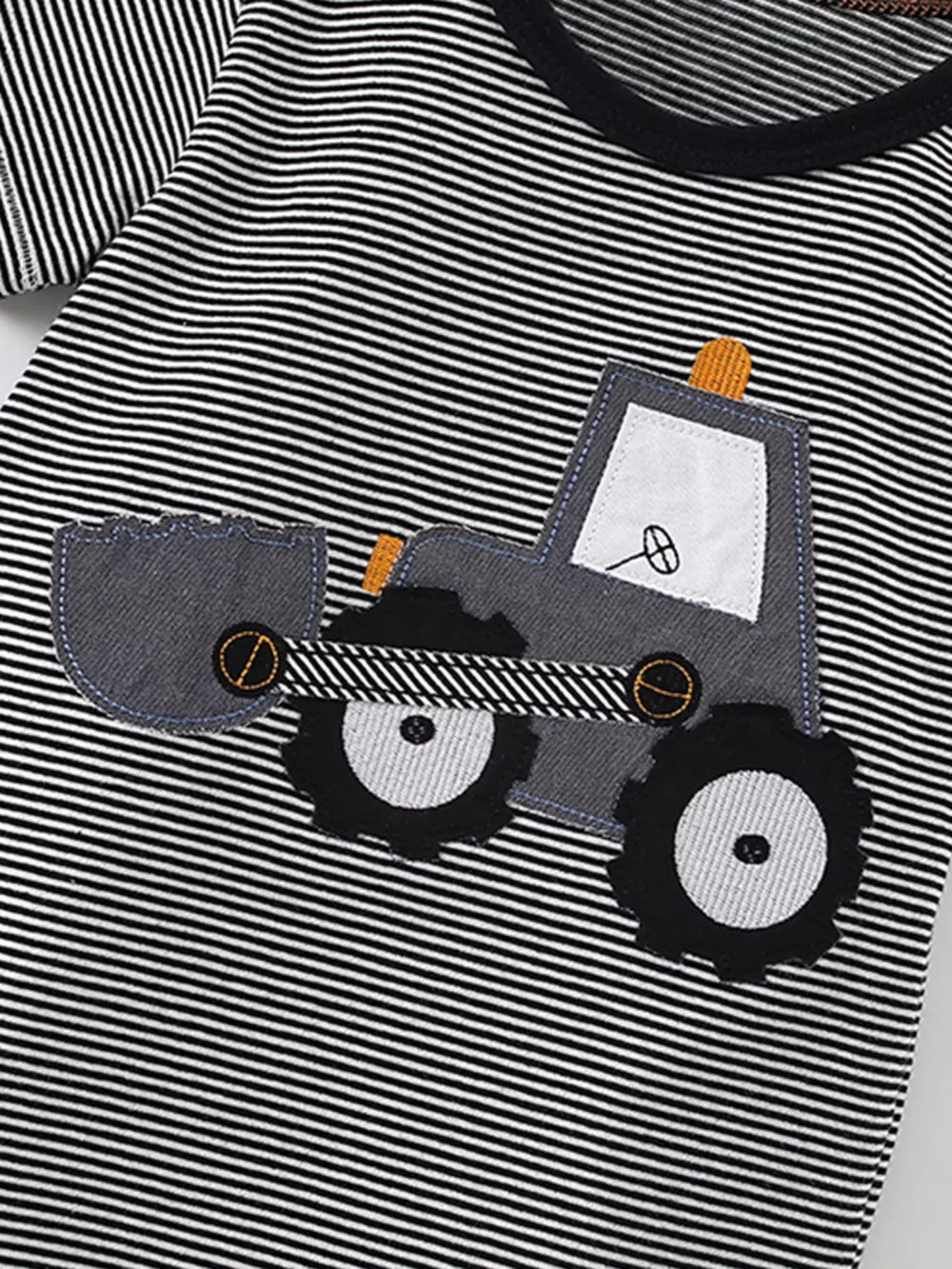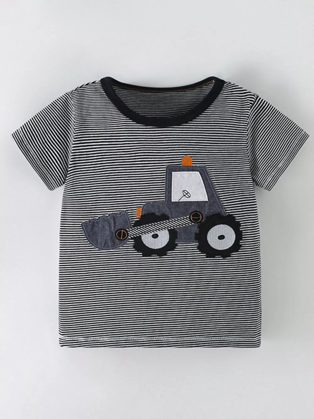 Children's Cartoon Excavator Striped T-Shirt