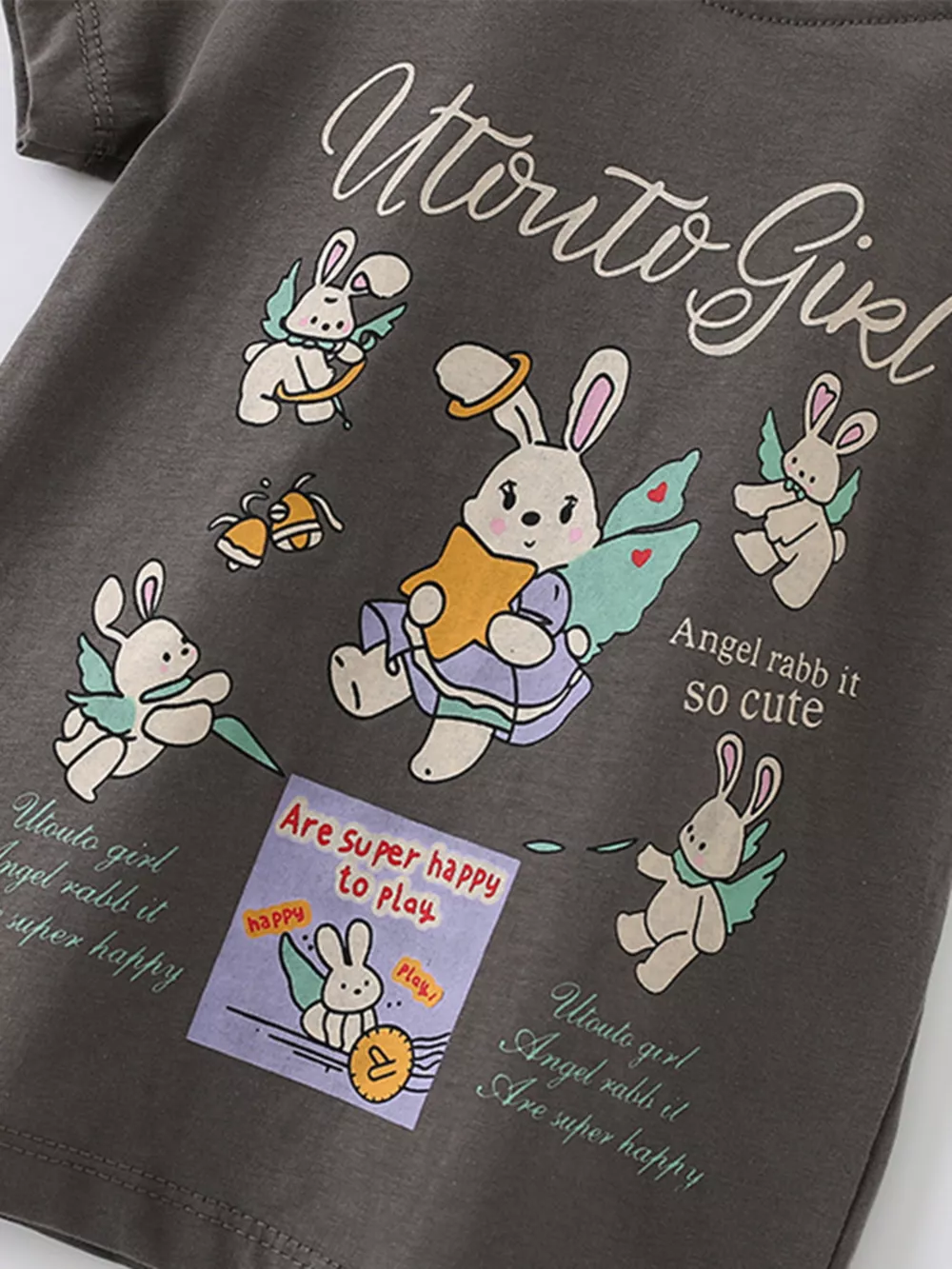 Children's Cartoon Rabbit Print Short Sleeve T-Shirt